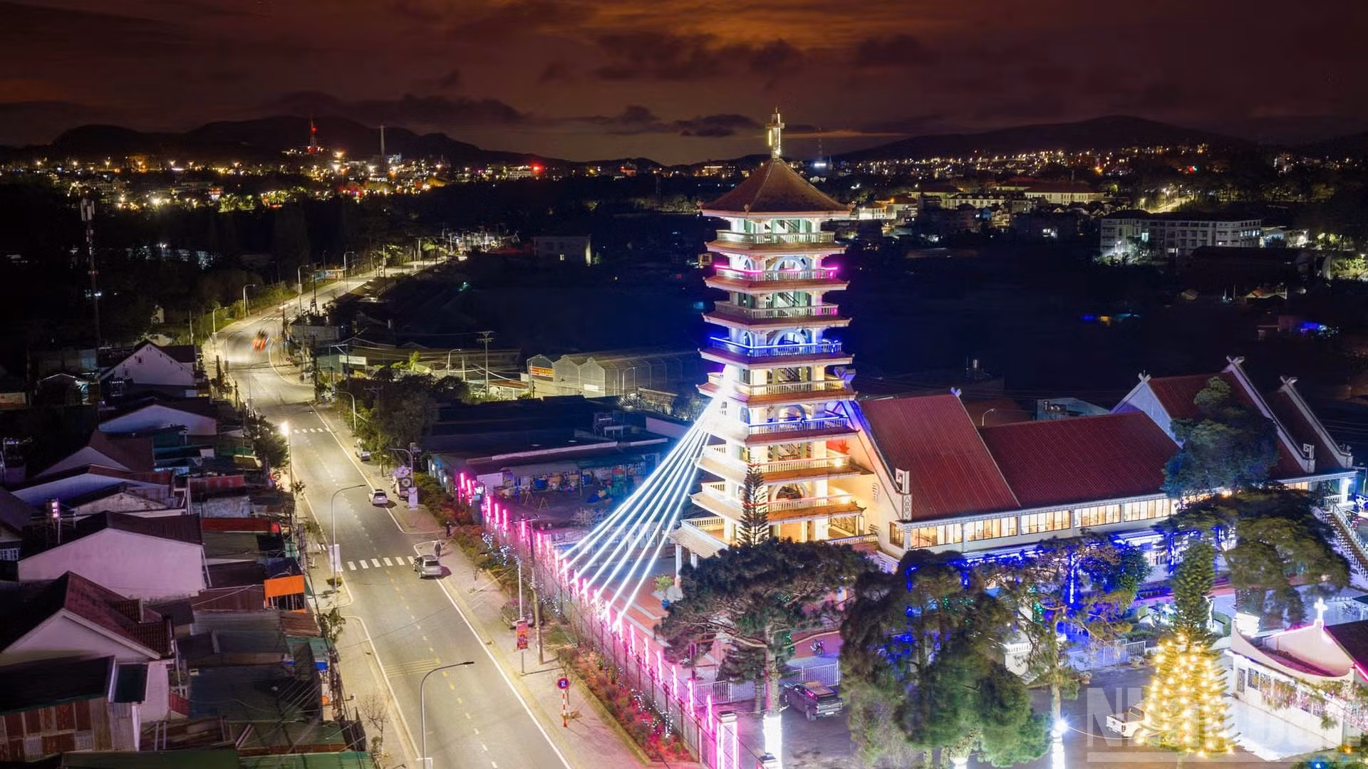 La iglesia de Thien Lam, con su singular campanario realzado por mágicas luces de colores, destaca entre las demás de la meseta de Lang Biang.