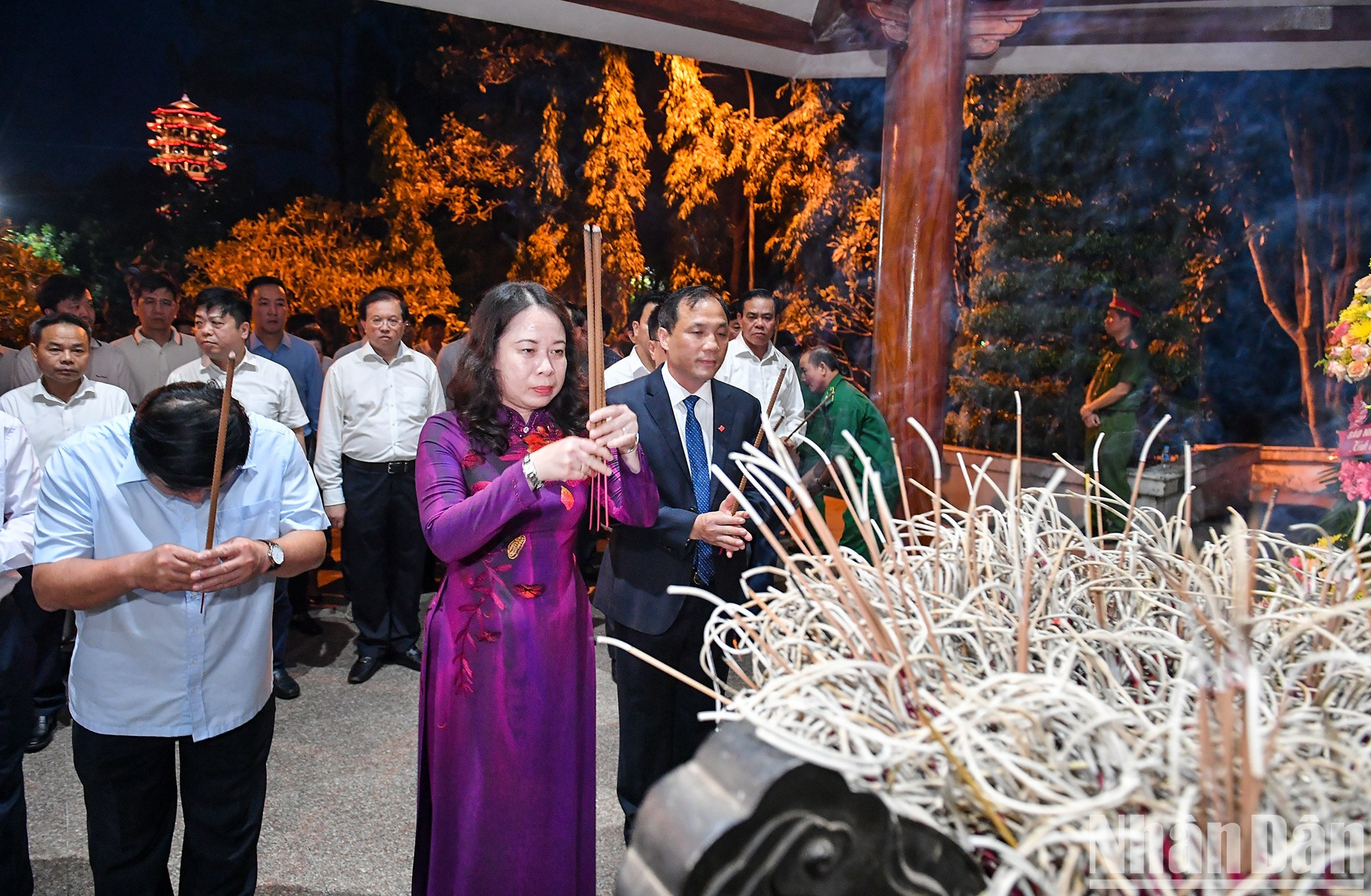 El mismo día, la vicepresidenta del país, Vo Thi Anh Xuan, y sus acompañantes ofrecieron inciensos en la Reliquia Nacional Especial de la encrucijada de Dong Loc.