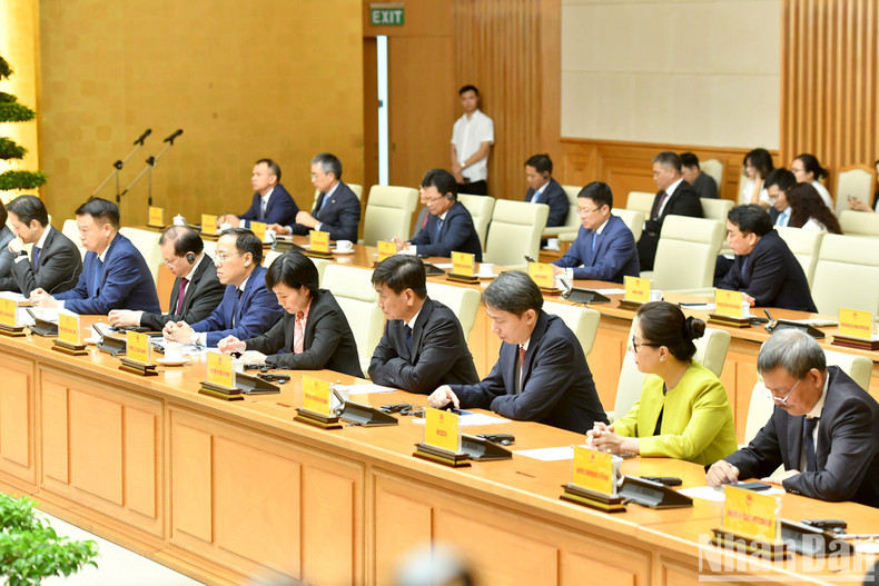 | El viceprimer ministro Tran Luu Quang y el jefe ejecutivo de la región administrativa especial china de Hong Kong, John Lee Ka-chiu. |