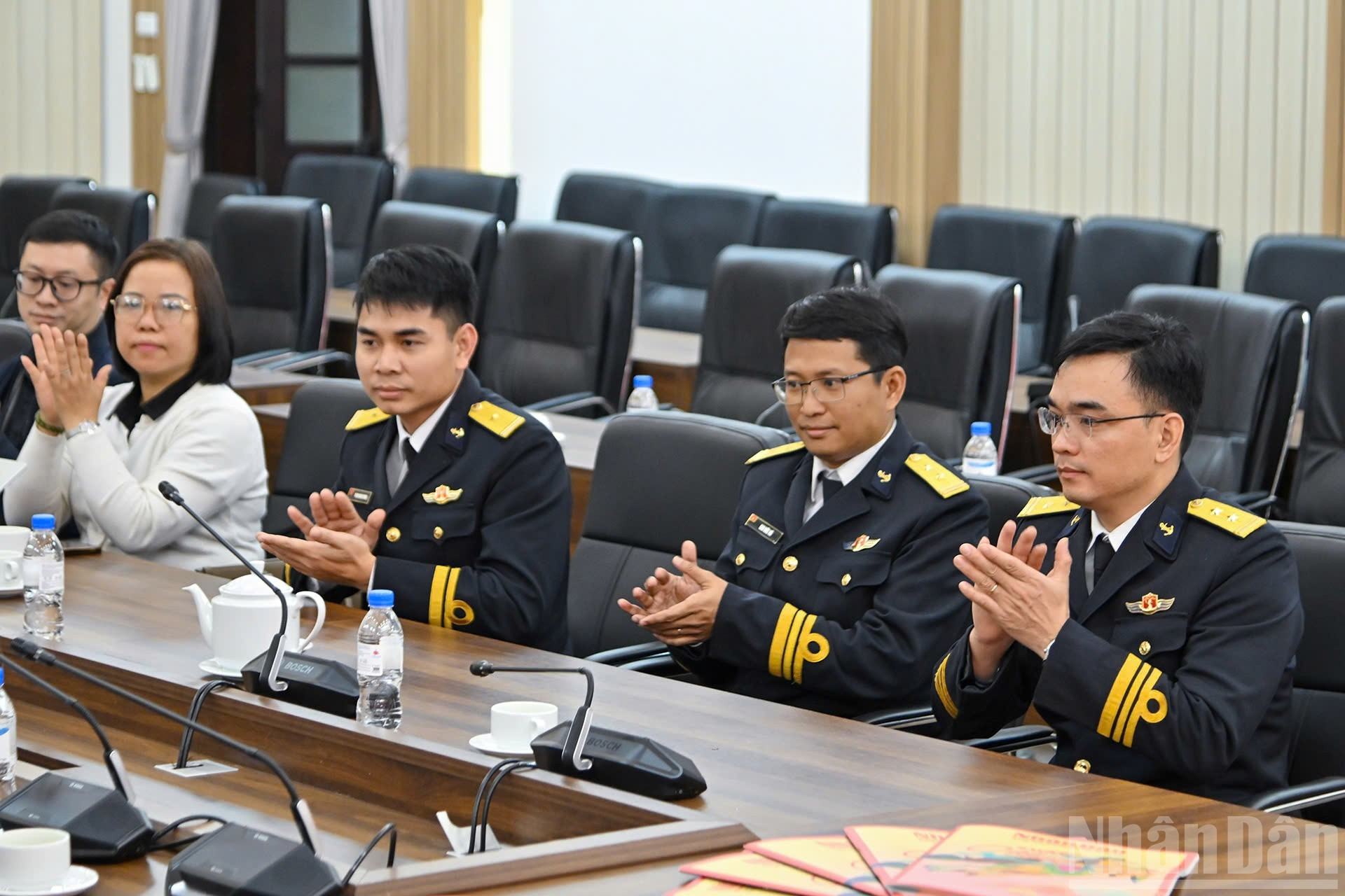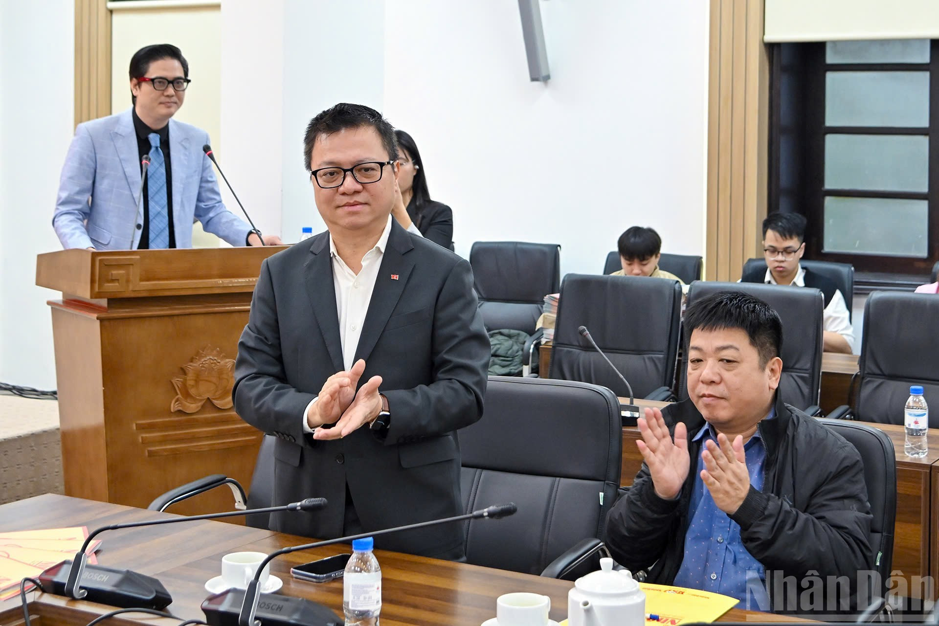 Le Quoc Minh, presidente editor del diario Nhan Dan, subjefe de la Comisión de Propaganda y Movilización de Masas del Comité Central del Partido y presidente de la Asociación de Periodistas de Vietnam; Que Dinh Nguyen, redactor jefe adjunto de Nhan Dan, y líderes de las entidades dependientes del diario.