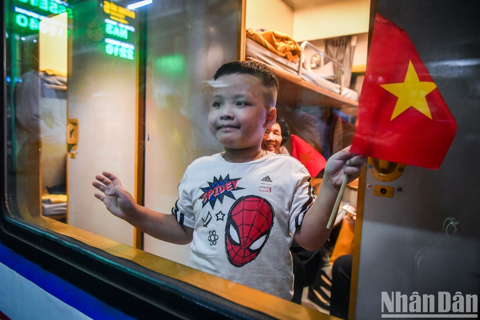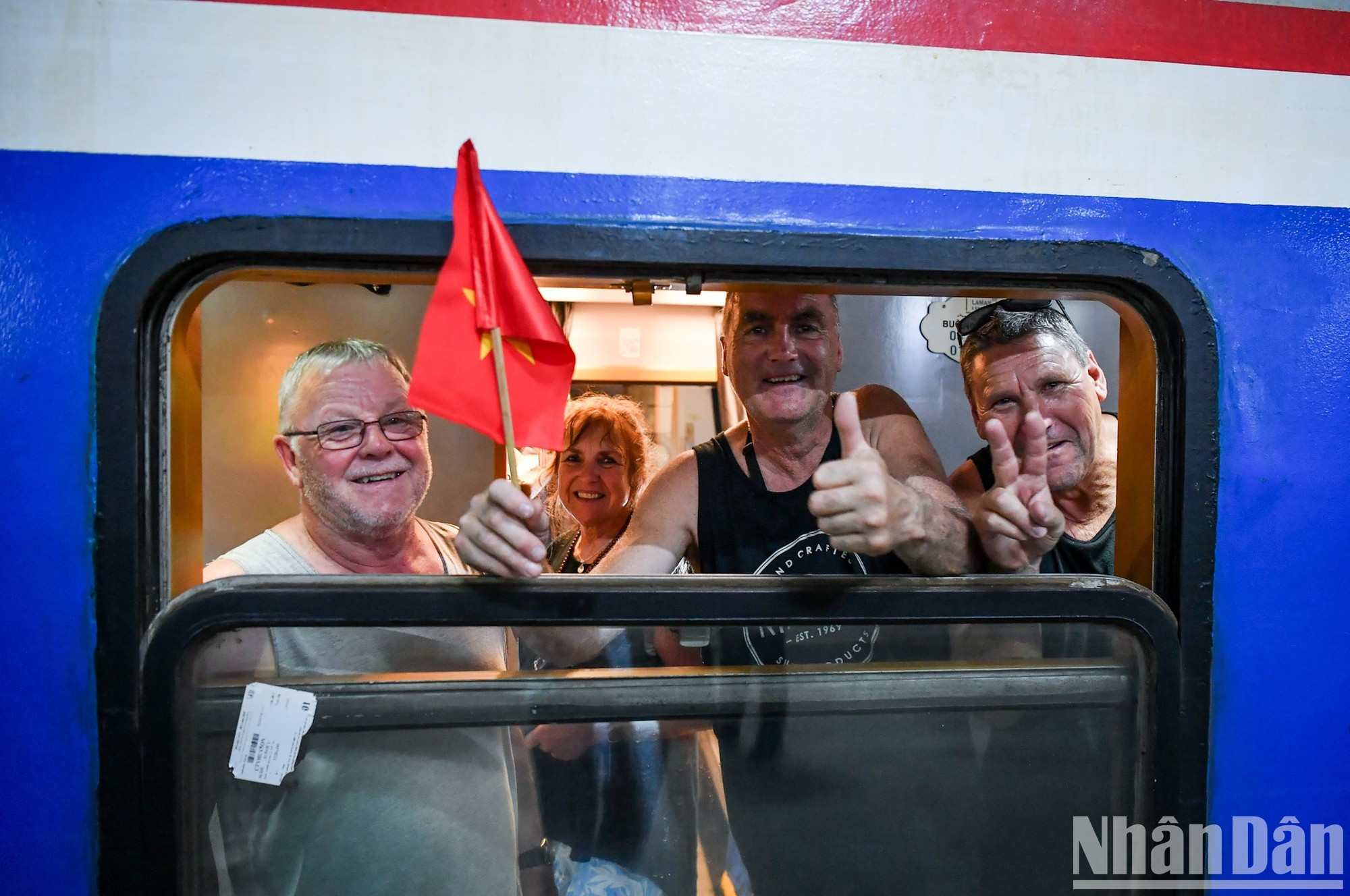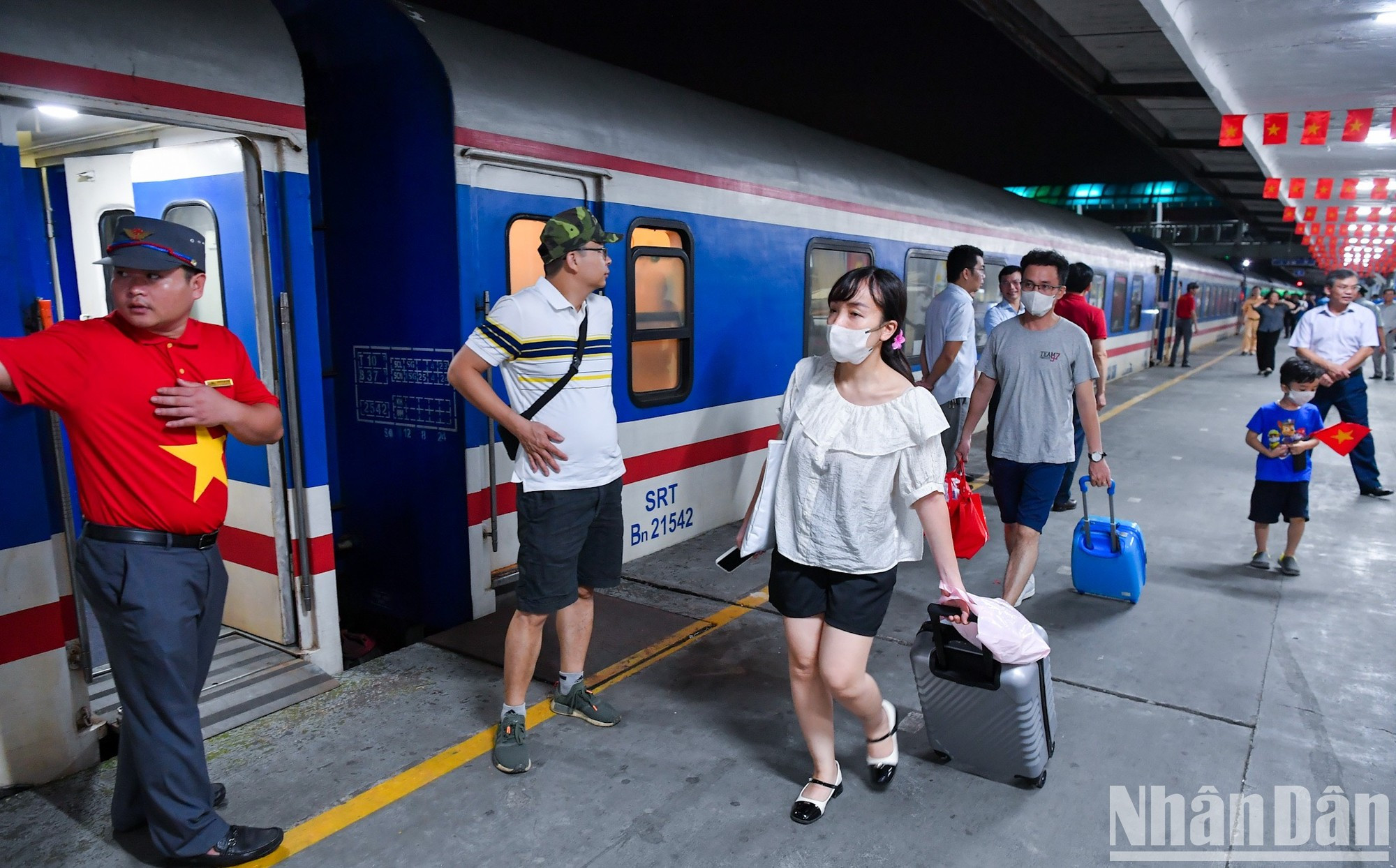 | La noche del 30 de agosto, los pasajeros de los trenes SE3 y SE19, que partían de la estación de Hanói, quedaron sorprendidos al ver a todo el personal ferroviario con camisetas con una bandera roja y una estrella amarilla. |