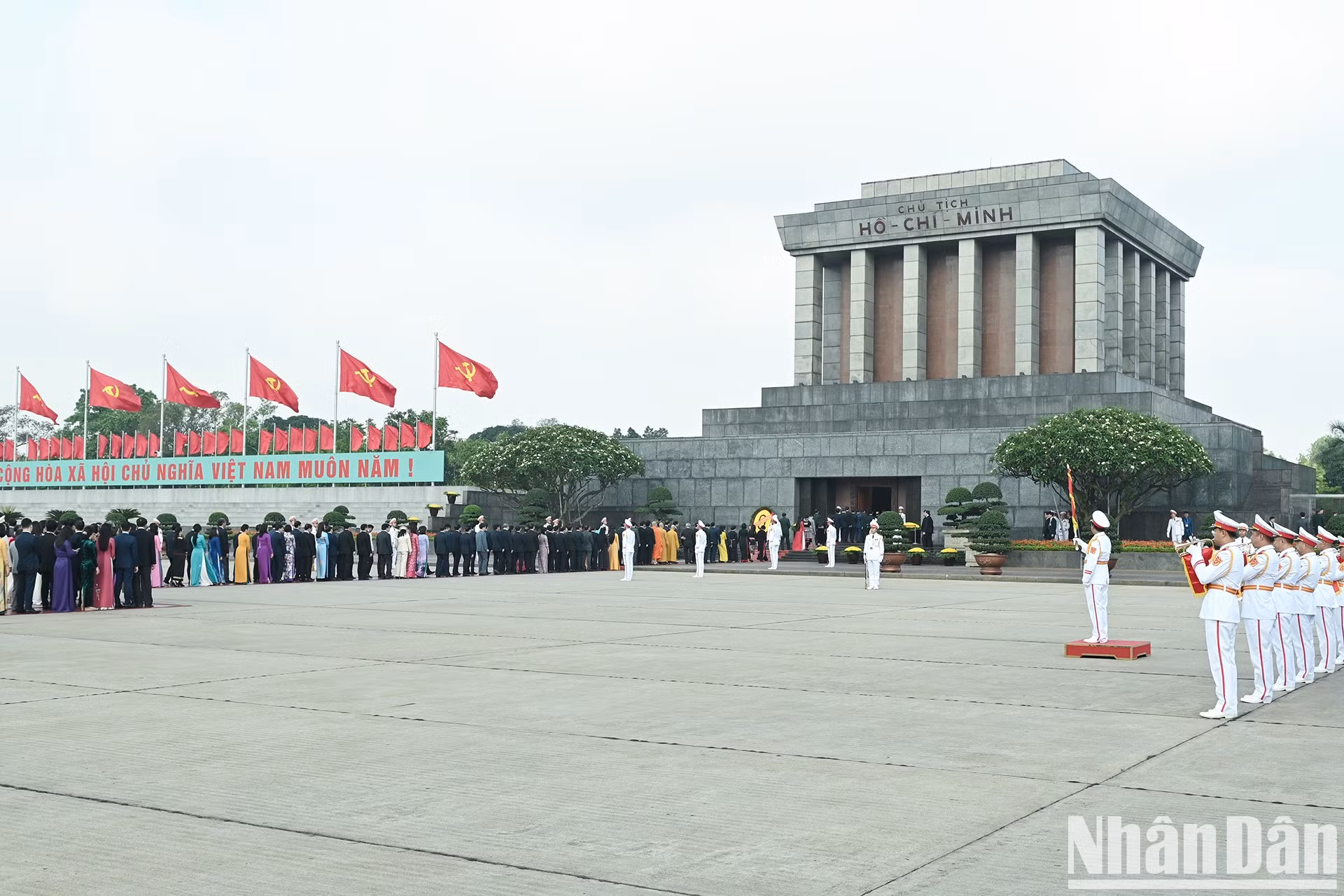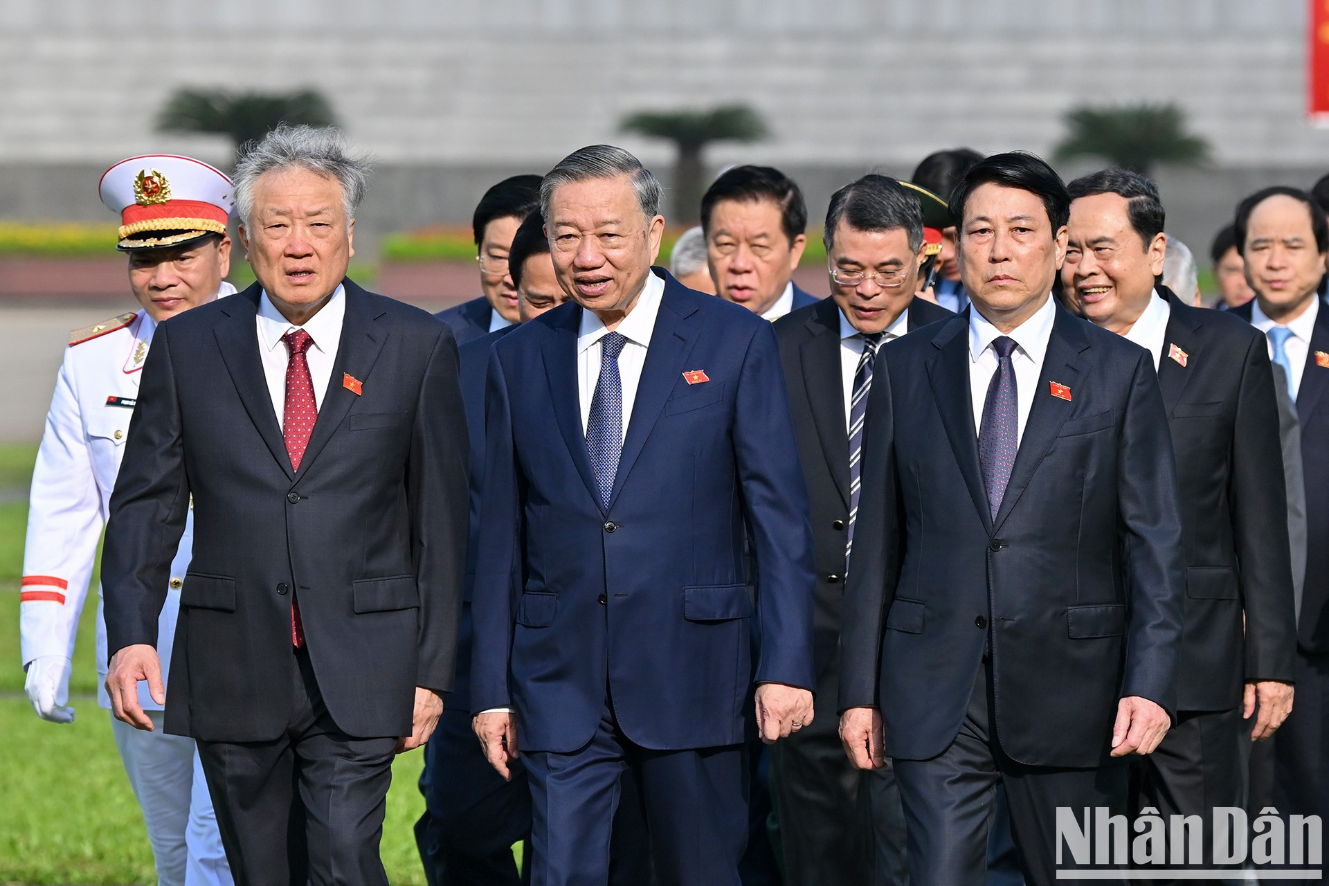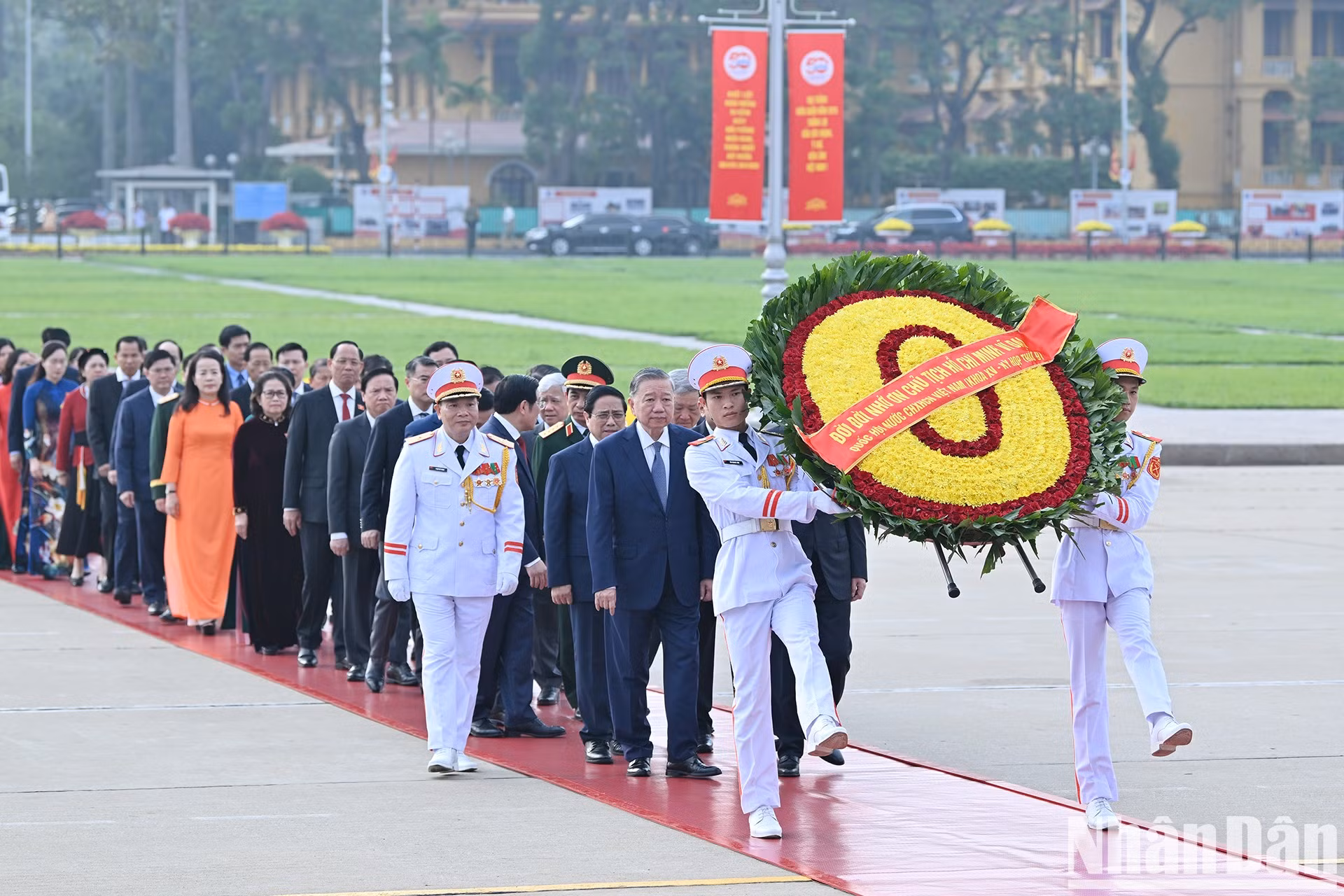 | El secretario general del Partido Comunista de Vietnam, To Lam; el presidente del país, Luong Cuong; el primer ministro Pham Minh Chinh y el titular de la Asamblea Nacional de Vietnam, Tran Thanh Man, encabezan una delegación para rendir homenaje al Presidente Ho Chi Minh. |