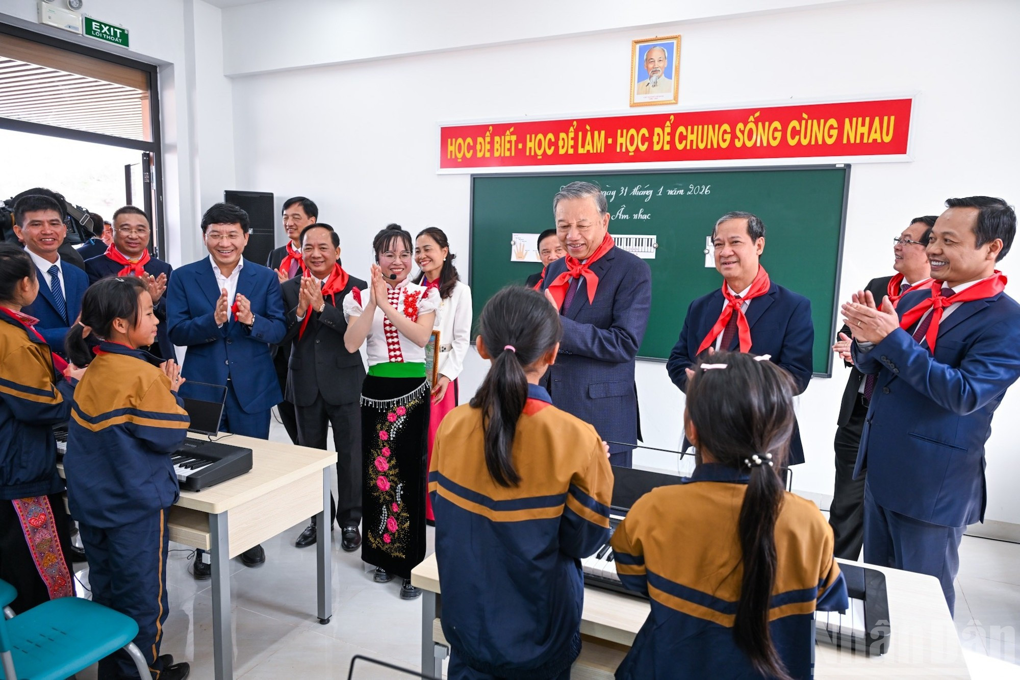 El secretario general del PCV, To Lam, y los líderes del Partido y del Estado visitan las aulas tras la ceremonia de inauguración.