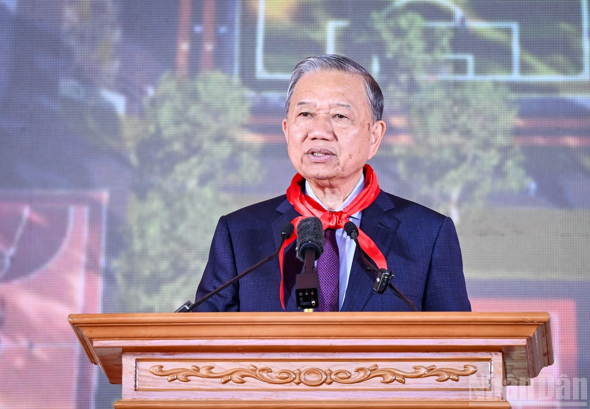 El secretario general del PCV, To Lam, pronuncia un discurso.