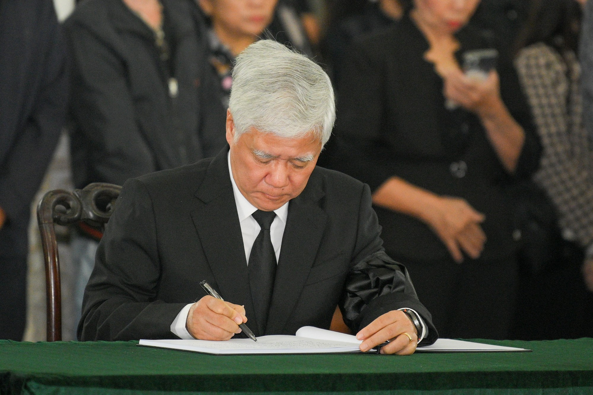 El presidente del Comité Central del Frente de la Patria de Vietnam, Do Van Chien, escribe en el libro de condolencias.