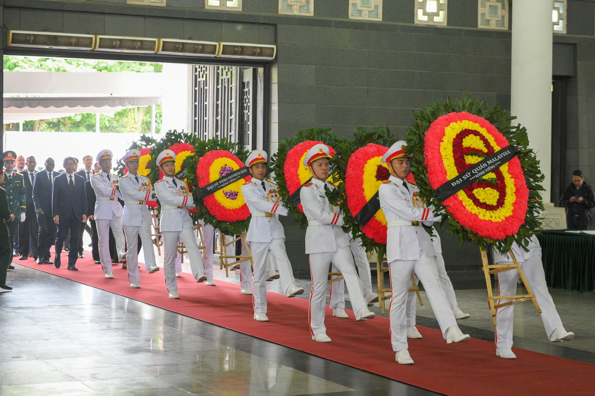 La delegación del Comité Central del Partido Comunista de Vietnam, encabezada por el primer ministro Pham Minh Chinh, llega al funeral.