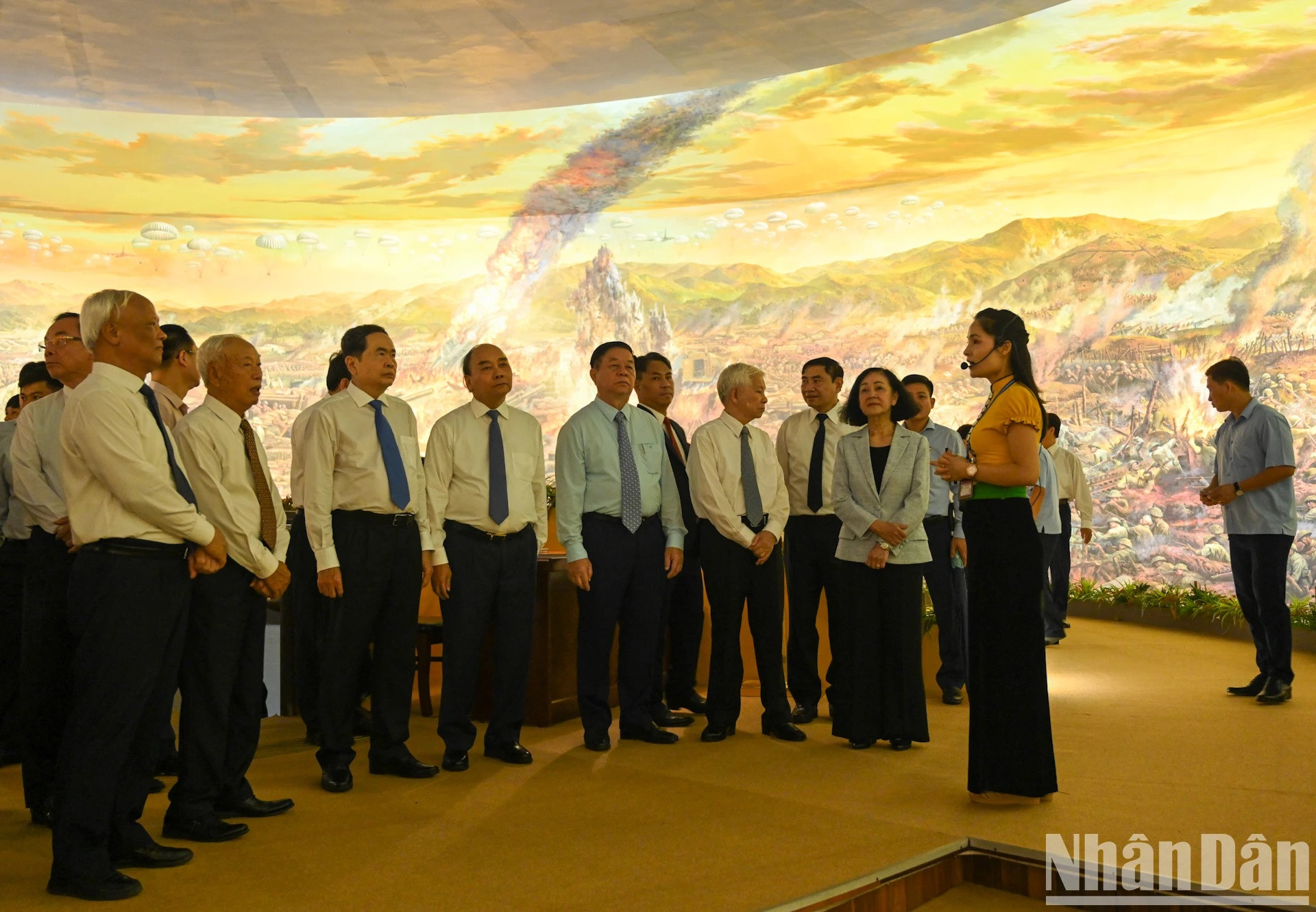 | Los delegados observan la pintura panorámica “Campaña de Dien Bien Phu” en el Museo. |