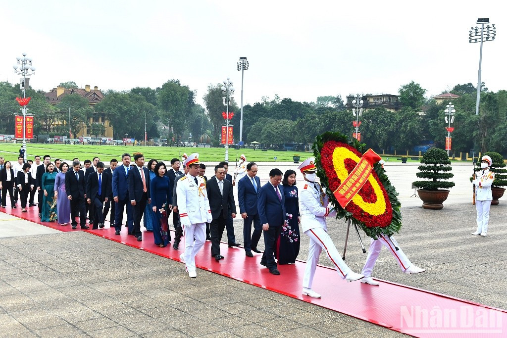 | Delegados del Comité del Partido Comunista de Vietnam, el Consejo Popular y el Comité Popular de Hanói rinden homenaje al Presidente Ho Chi Minh. |