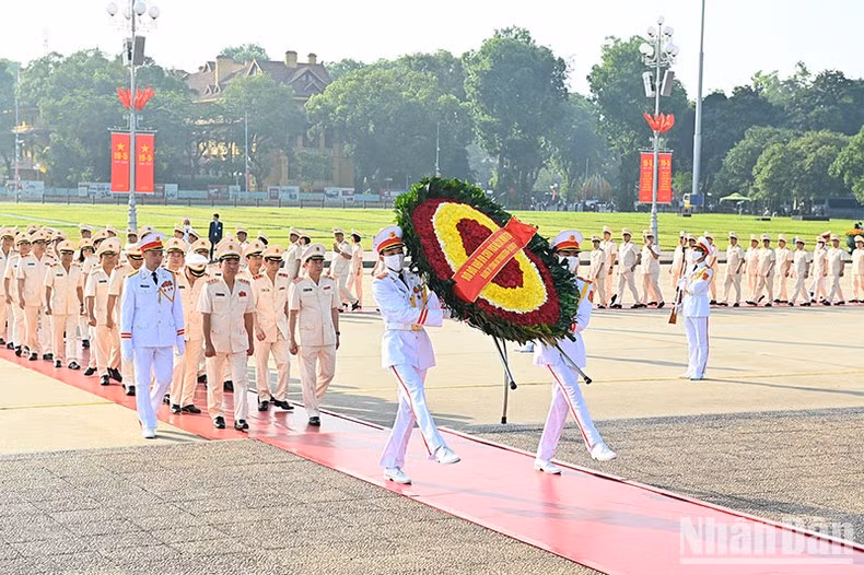 | Los dirigentes del Partido y Estado rinden homenaje al Presidente Ho Chi Minh. |