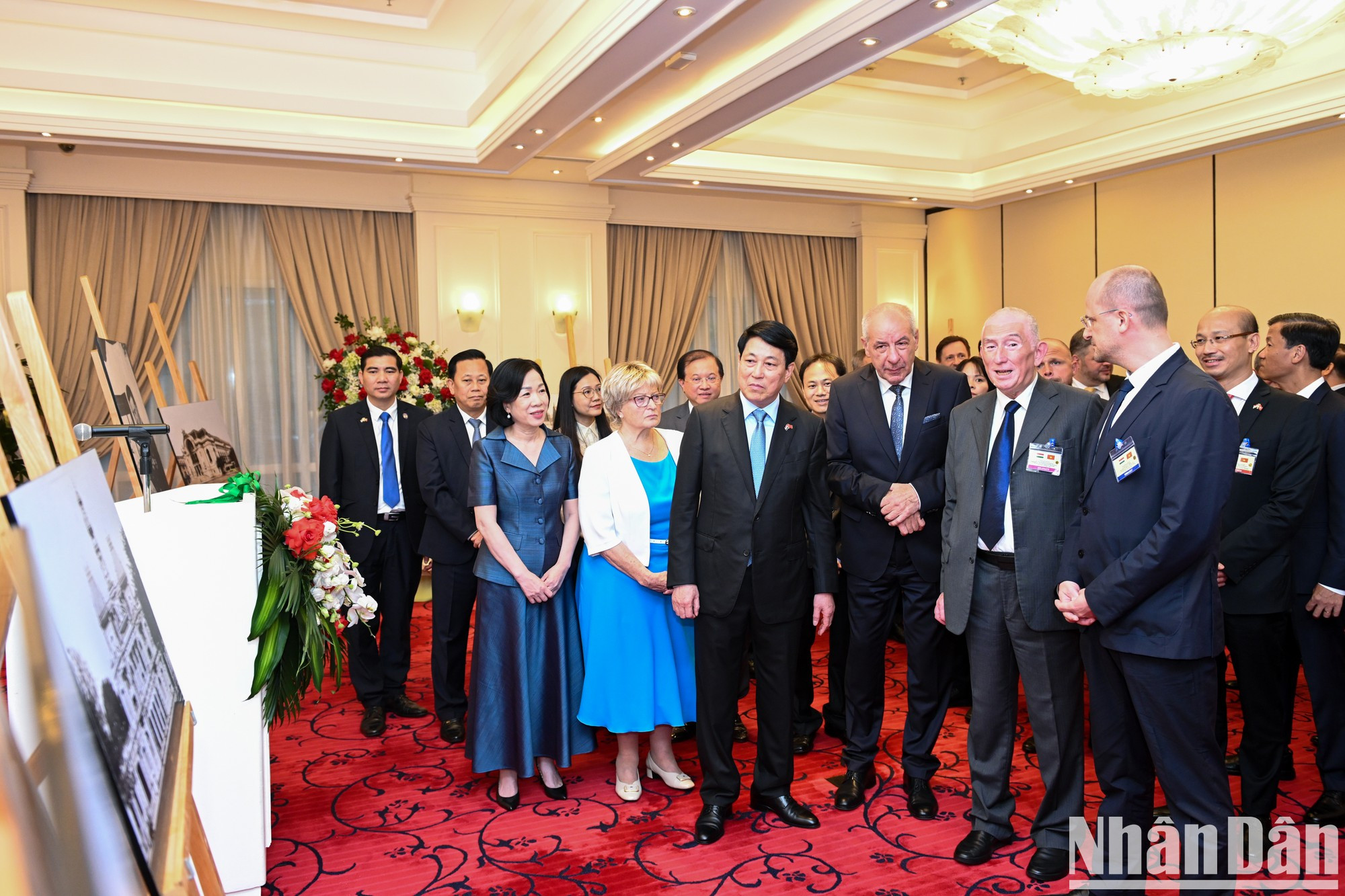 | El presidente Luong Cuong presenta el monocordio a los visitantes húngaros. |