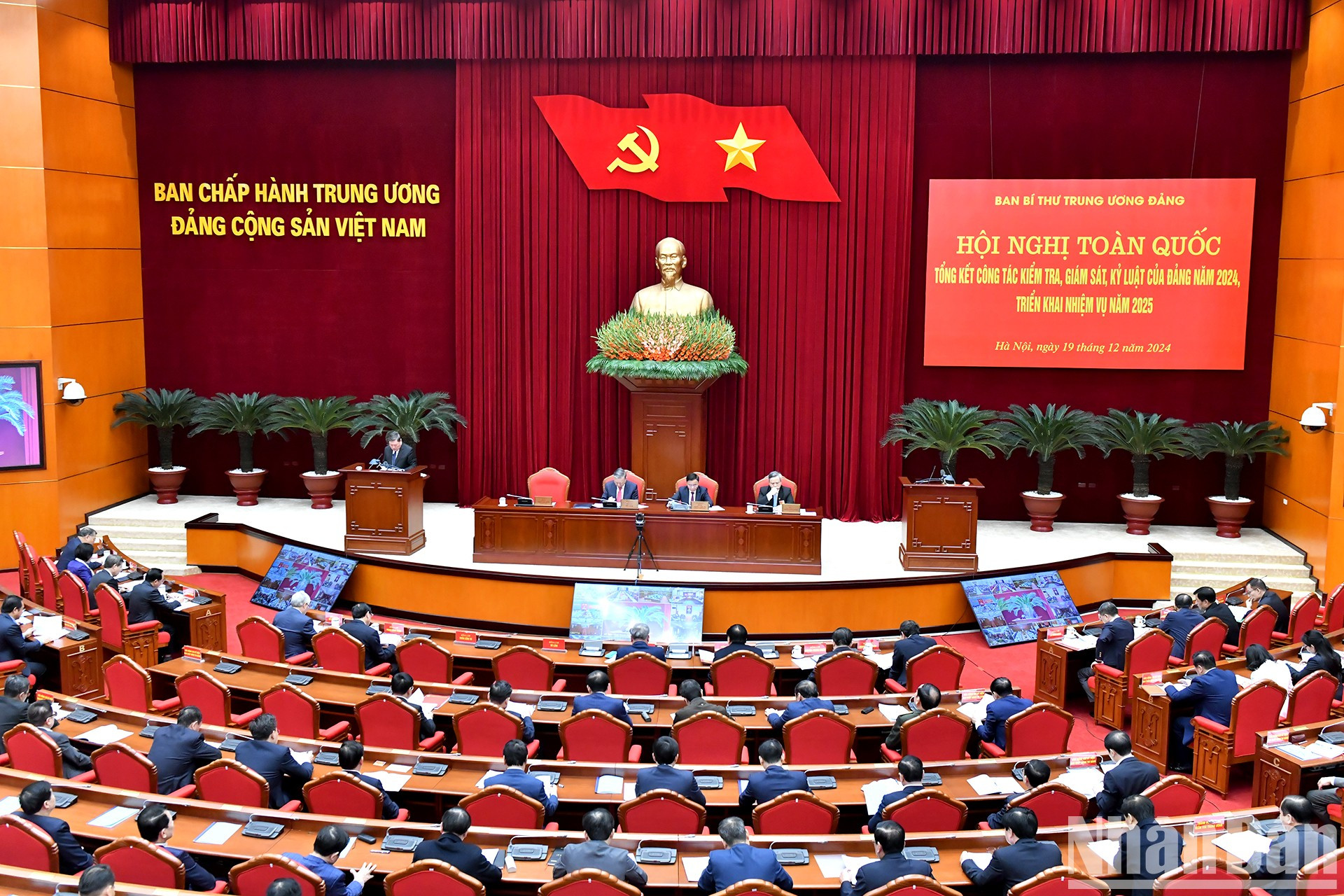 | Tran Van Ron, miembro del Comité Central del Partido y subjefe permanente de su Comisión de Control Disciplinario, presenta un informe. |