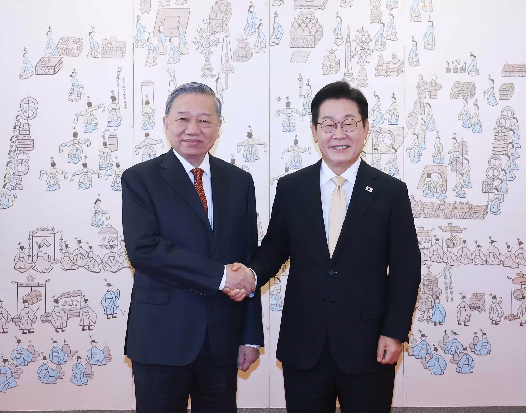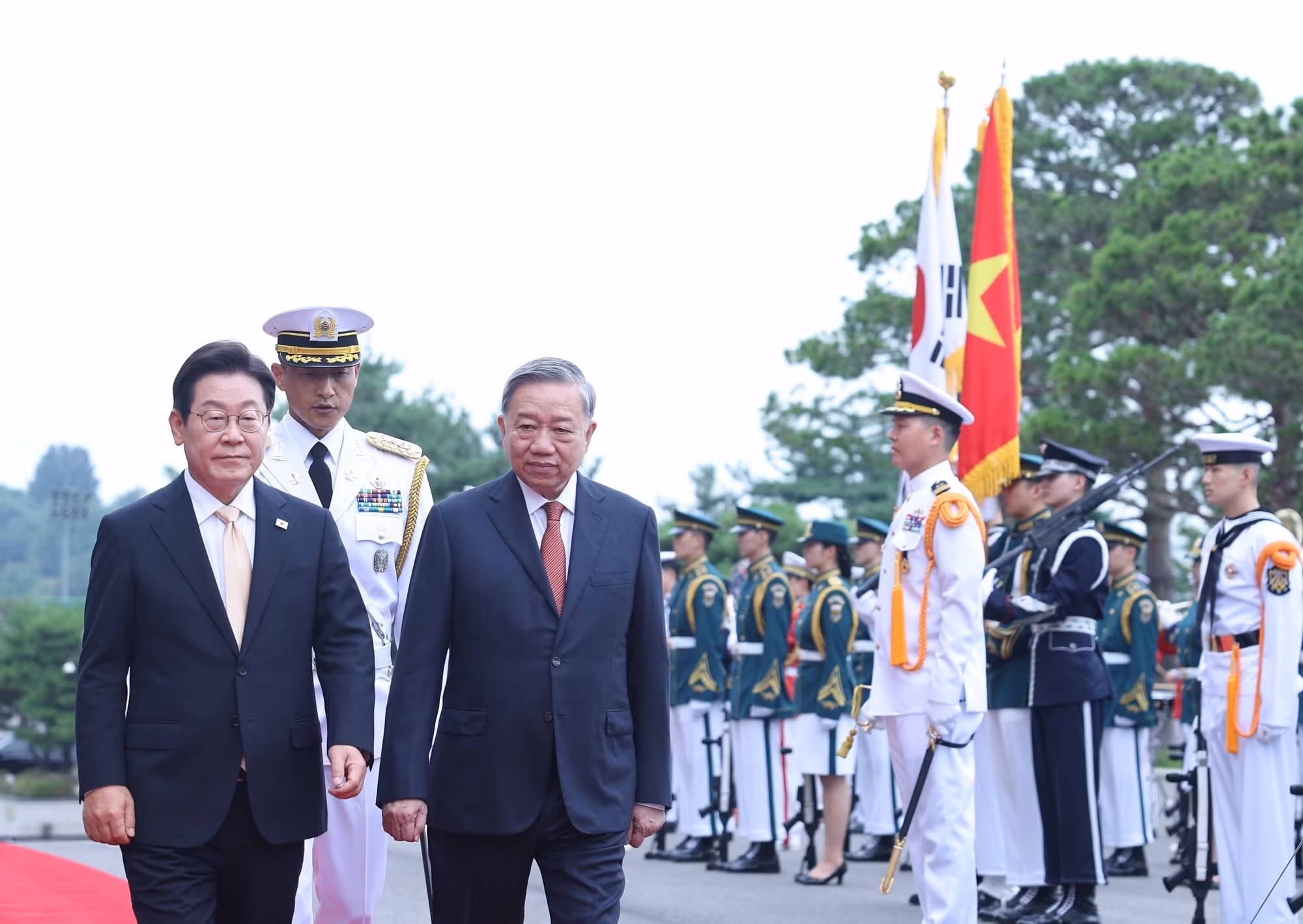 La ceremonia de bienvenida al secretario general del Partido Comunista de Vietnam (PCV), To Lam, y a su esposa, Ngo Phuong Ly, junto con la delegación de alto nivel del país indochino, se efectuó esta mañana en la Oficina Presidencial de Yongsan en Seúl.