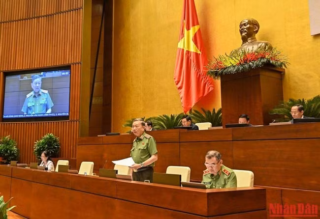 La diputada Nguyen Thi Thuy hace la pregunta al ministro To Lam.