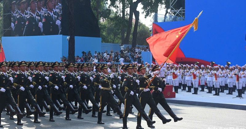 | La formación del Ejército Popular de Liberación de China marcha en el desfile. |