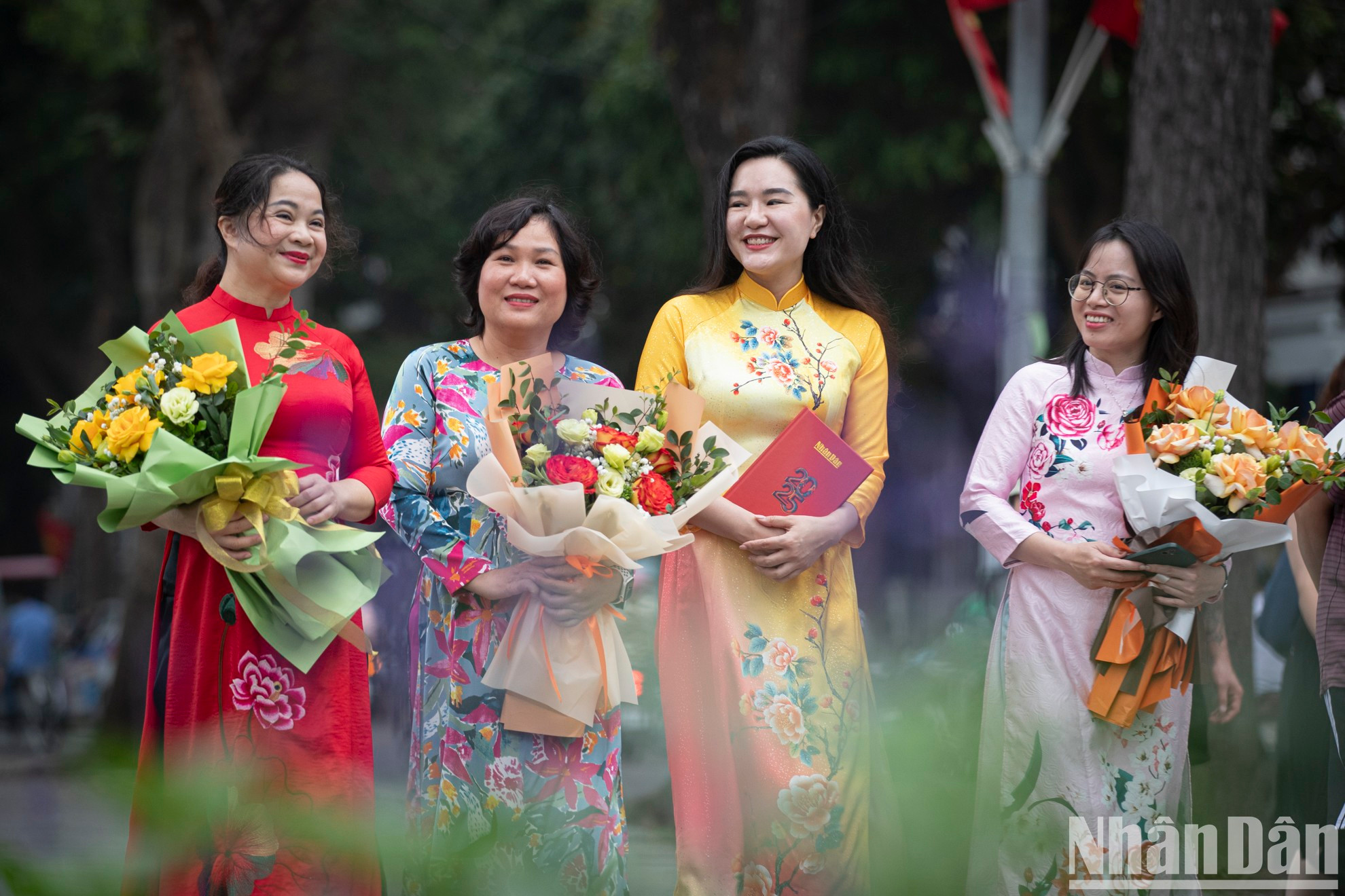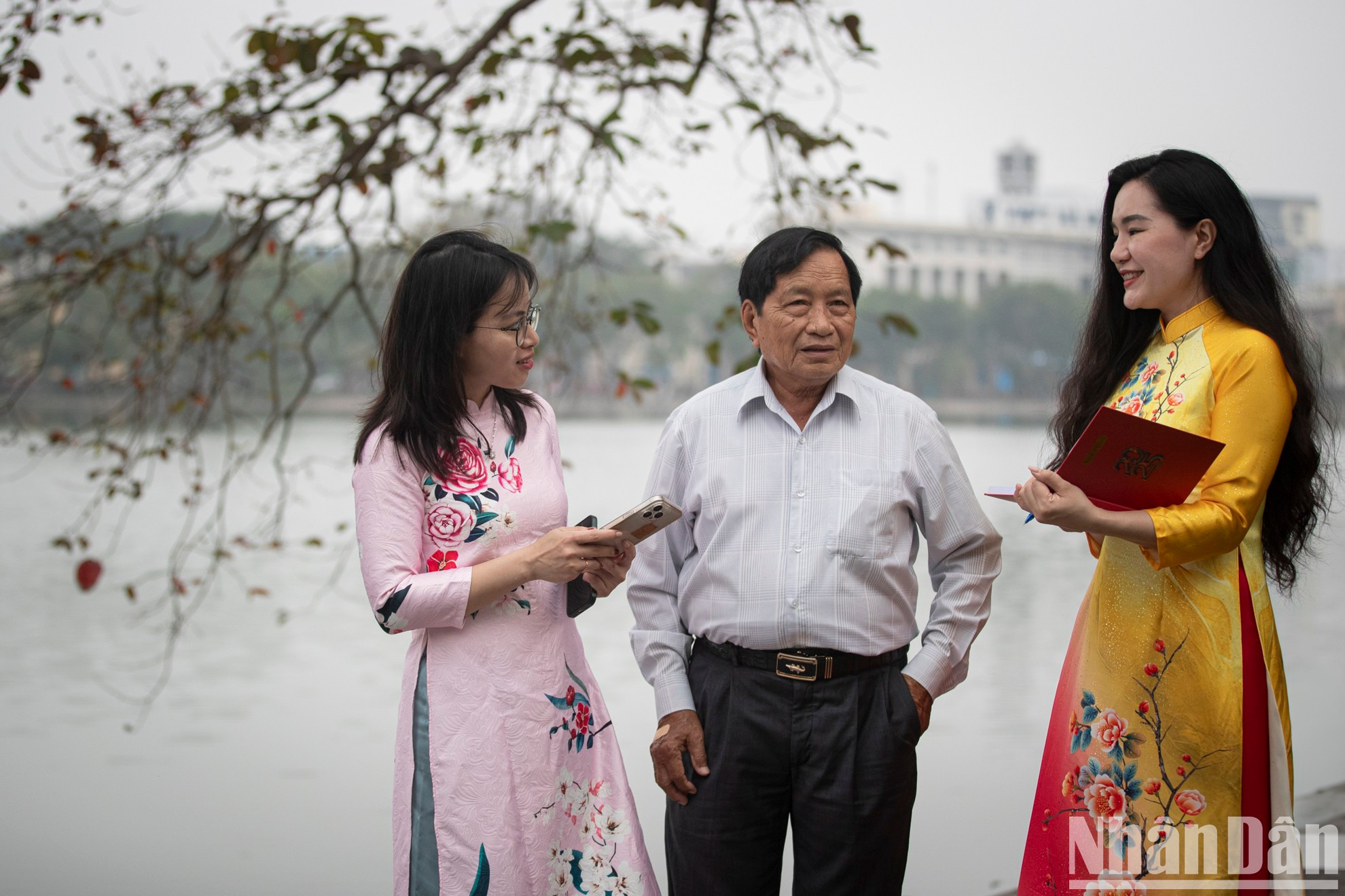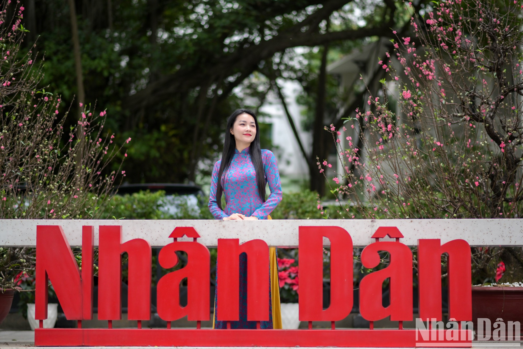 | En paralelo con el movimiento, el Sindicato del periódico Nhan Dan ha lanzado el concurso fotográfico “Belleza de las féminas de Nhan Dan en el ao dai”. |