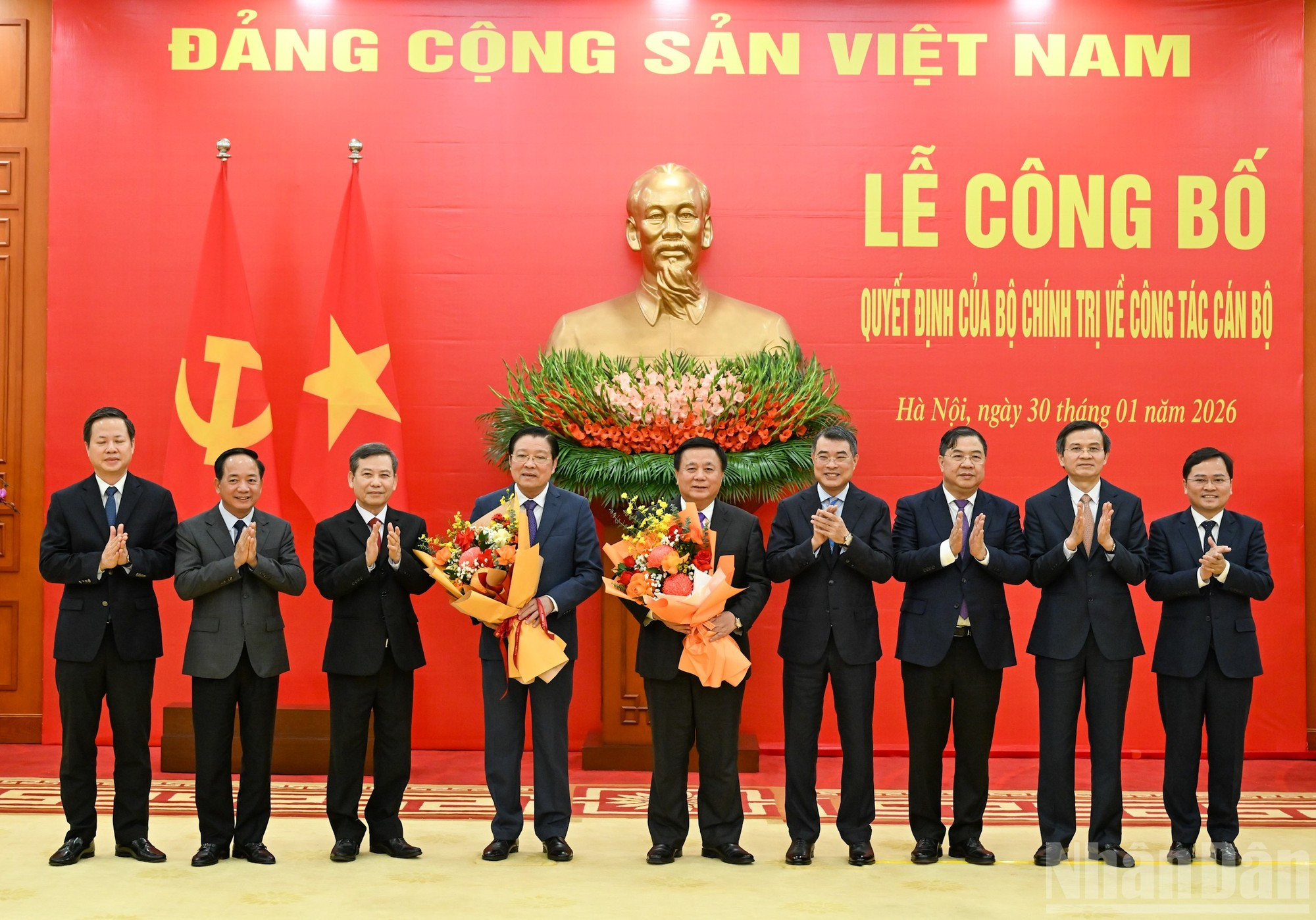 El secretario general del Partido Comunista de Vietnam (PCV), To Lam, entregó hoy decisiones del Buró Político sobre el asunto del personal a los camaradas Le Minh Tri y Doan Minh Huan.