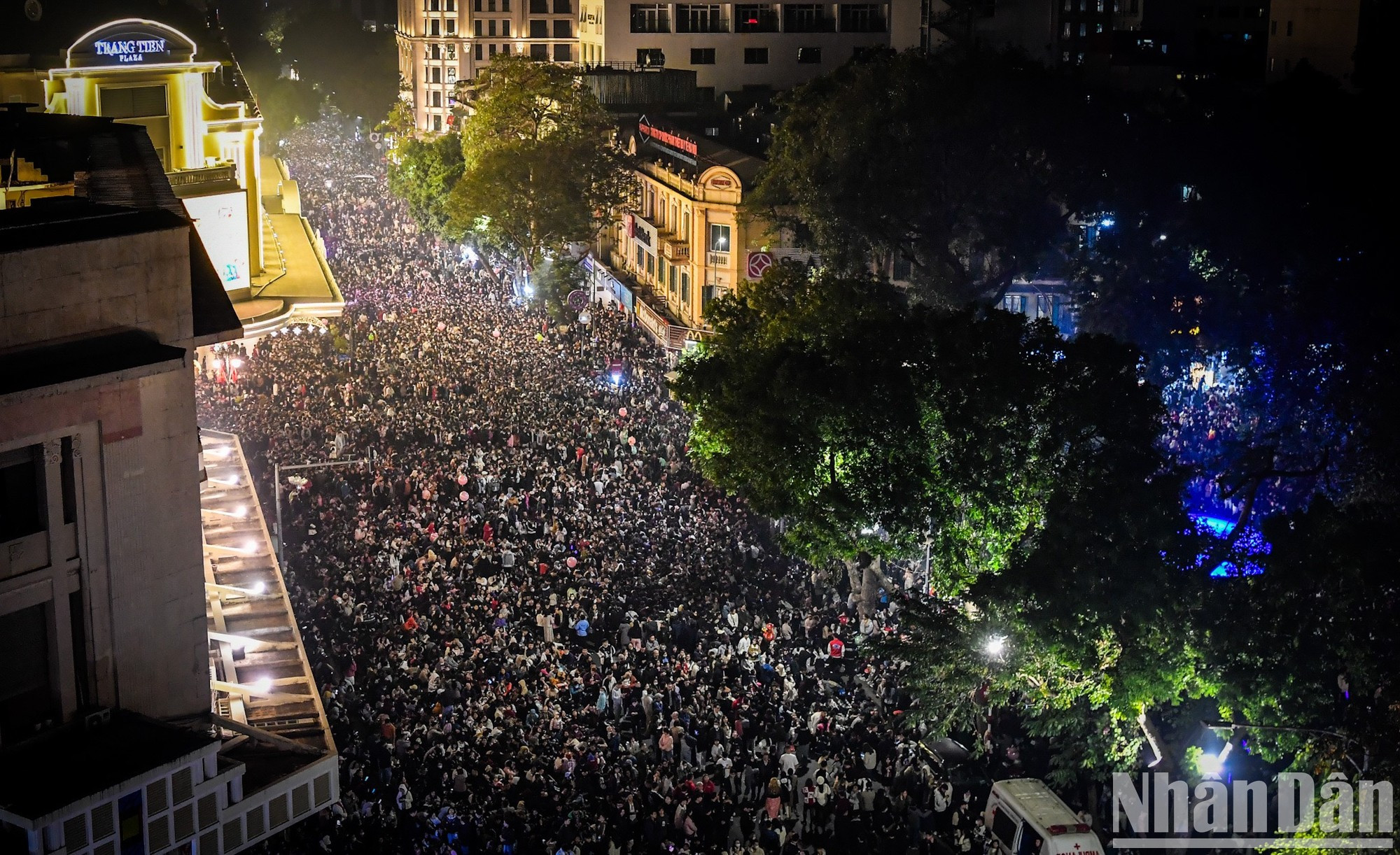 |   Fuegos artificiales observados desde lo alto del edificio de la Oficina de Correos de Hanói.  |