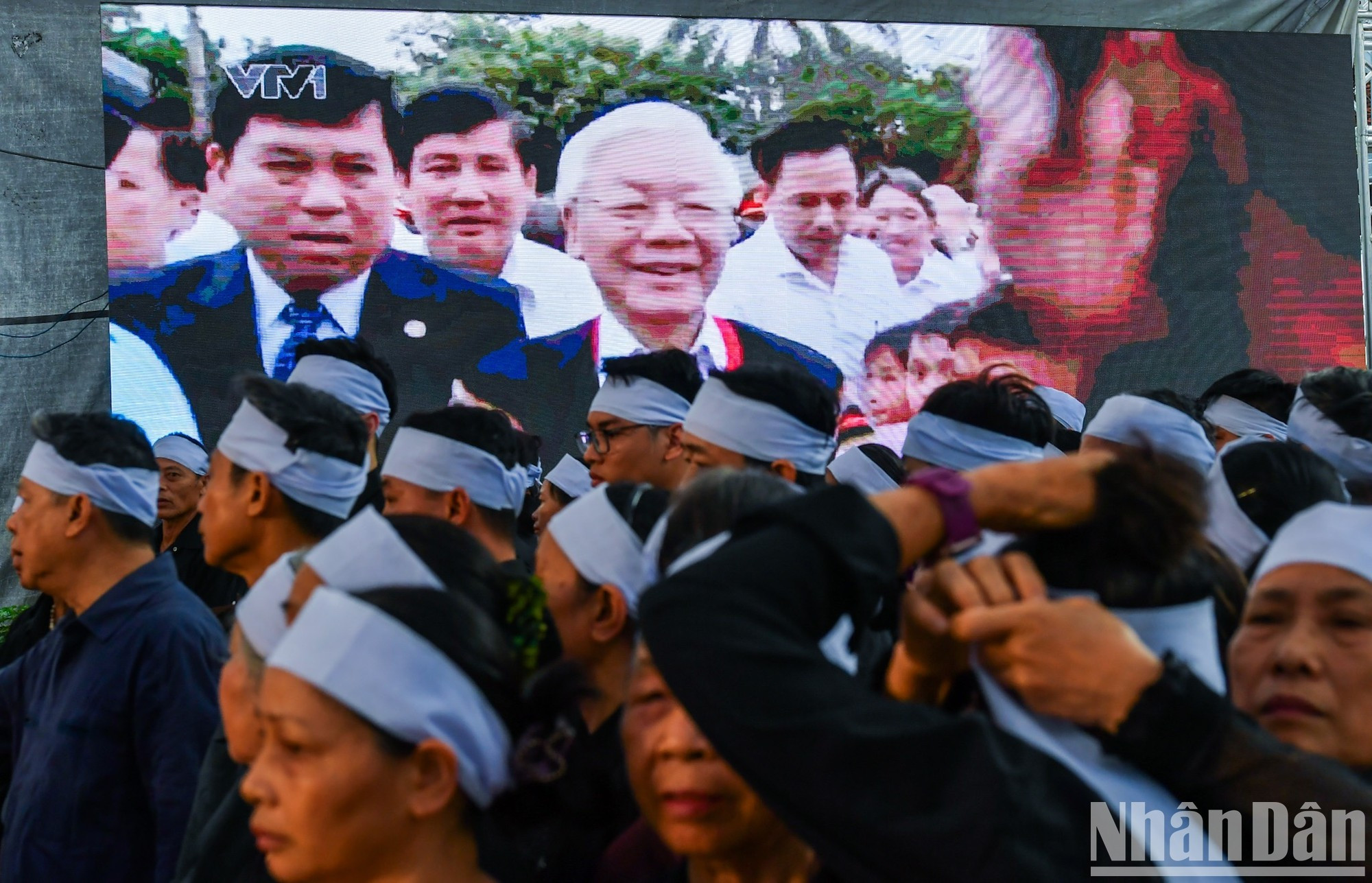 | Numerosos habitantes locales se reúnen en el pueblo natal del secretario general Nguyen Phu Trong en la aldea de Lai Da. |