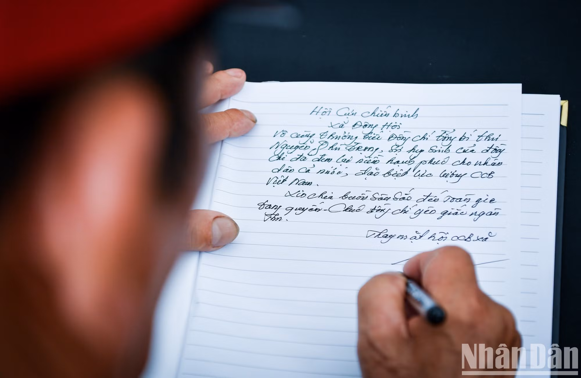 | Ciudadanos de la aldea de Lai Da escriben en el libro de condolencias. |
