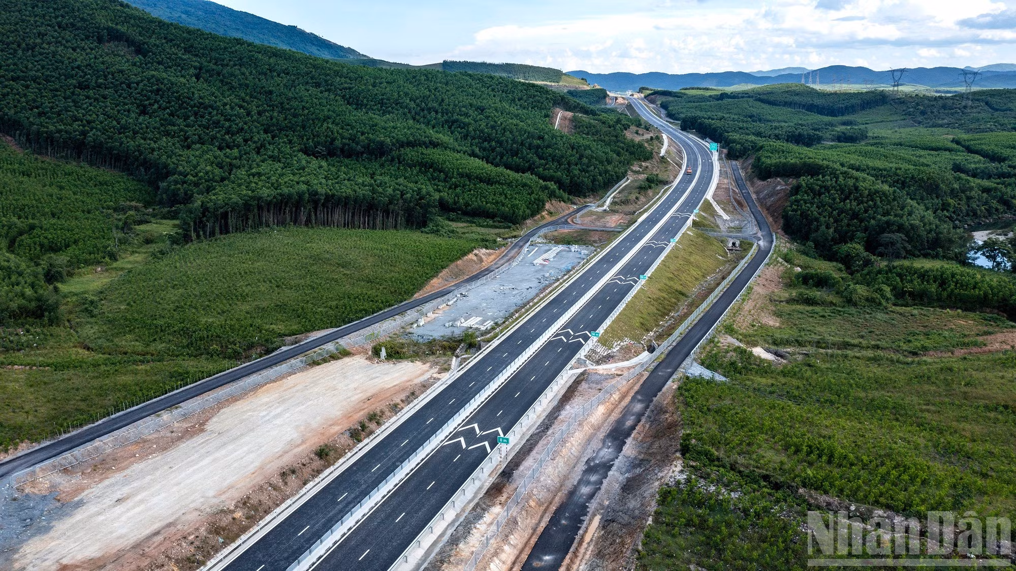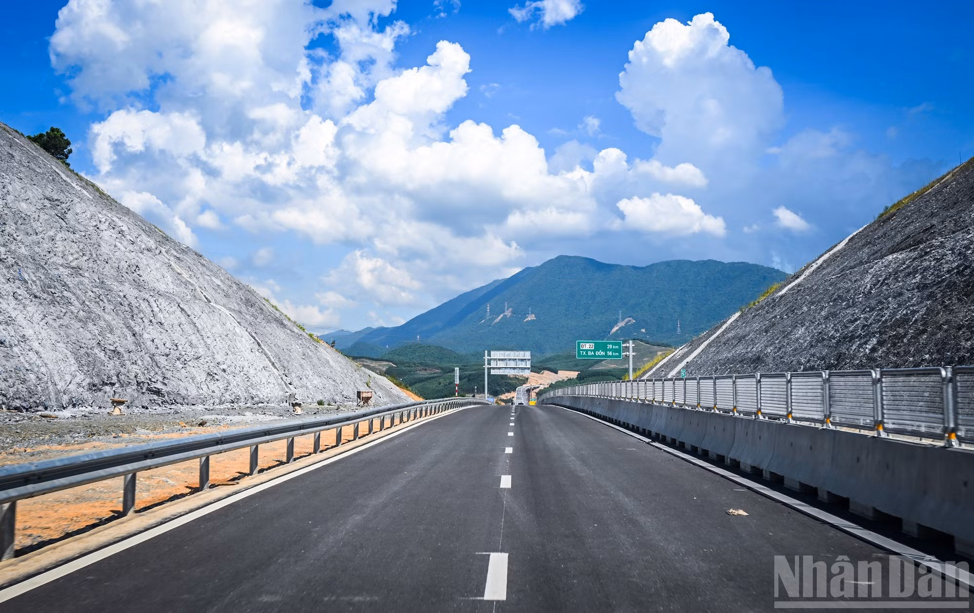 La mayoría de los tramos de la autopista Vung Ang-Bung ya cuentan con barandillas, líneas pintadas y señales de tráfico.