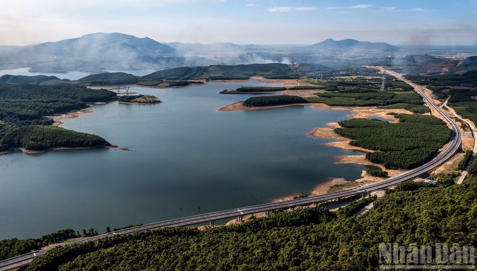 En el antiguo distrito de Ky Anh de la provincia de Ha Tinh, la autopista atraviesa terrenos complejos, como colinas y montañas y un lago.