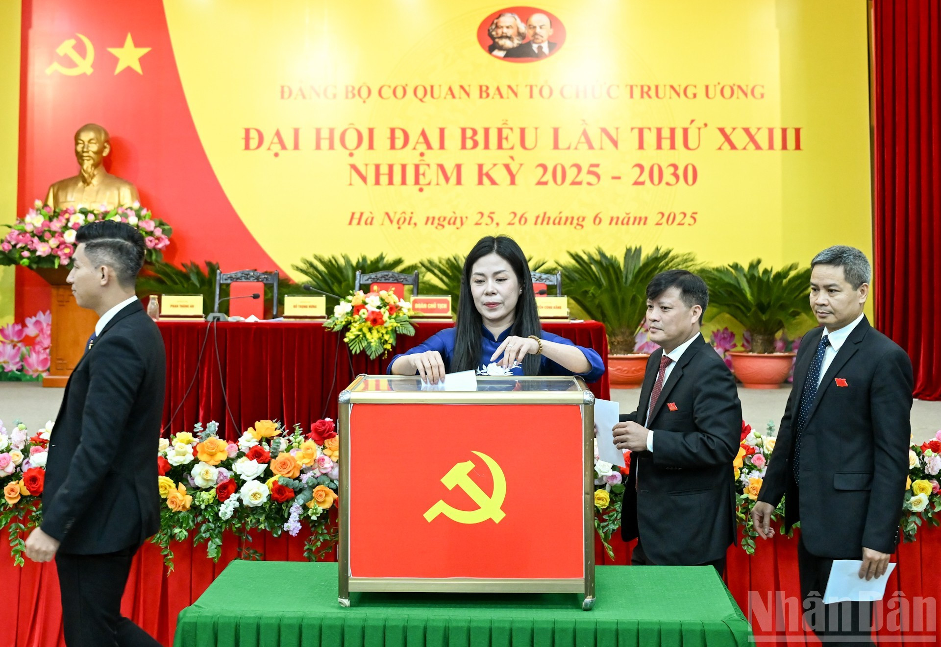 El miembro del Buró Político, permanente del Secretariado del PCV y secretario de los organismos partidistas del Comité Central del PCV, Tran Cam Tu, habla en la cita. Cam Tu en la cita. Votan para elegir al Comité Ejecutivo del Comité partidista de la Comisión de Organización del Comité Central del PCV para el período 2025-2030.