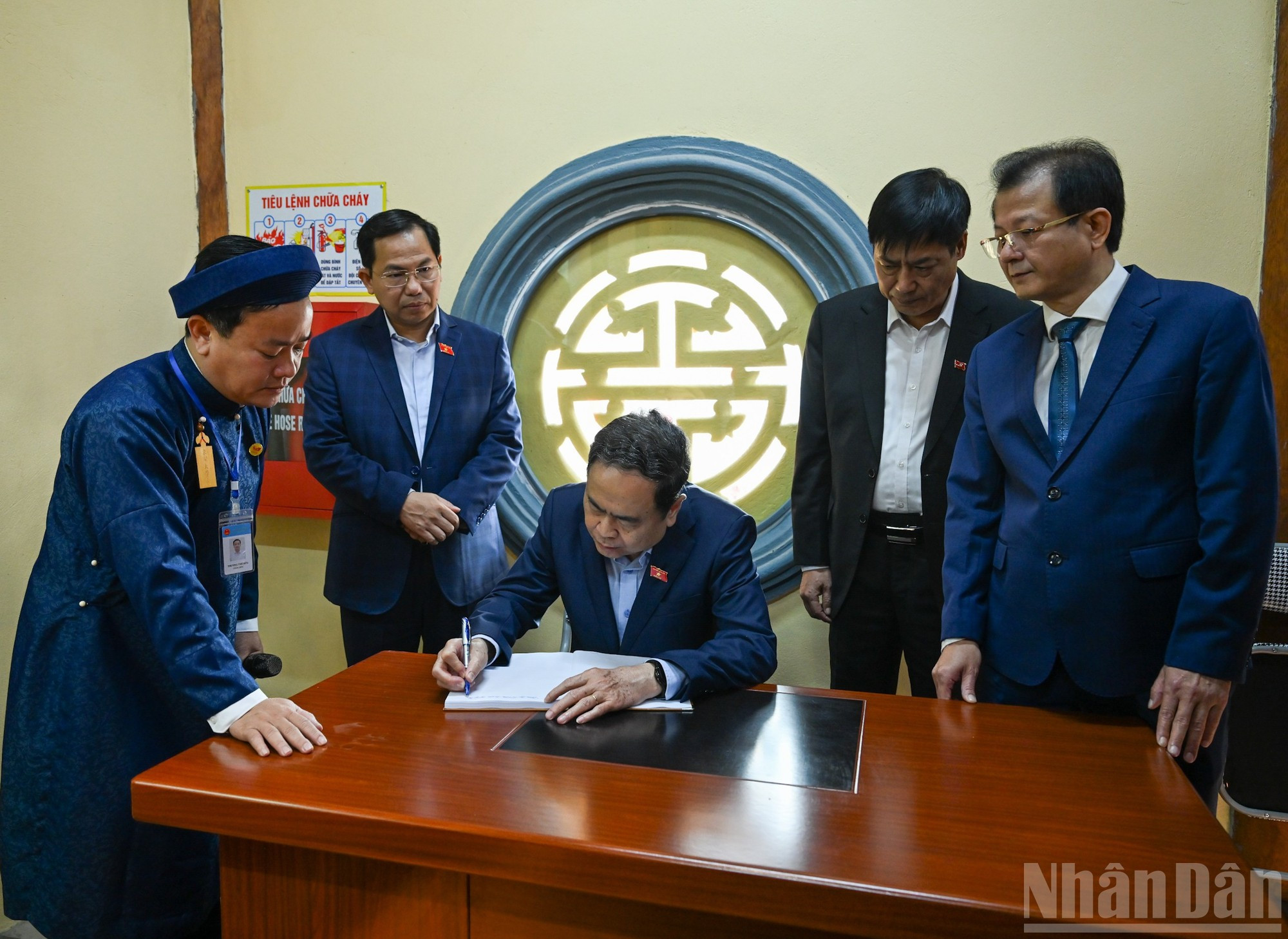 El presidente de la Asamblea Nacional, Tran Thanh Man, firma el libro de visitas del sitio conmemorativo de Bui Bang Doan. (Foto: Duy Linh)