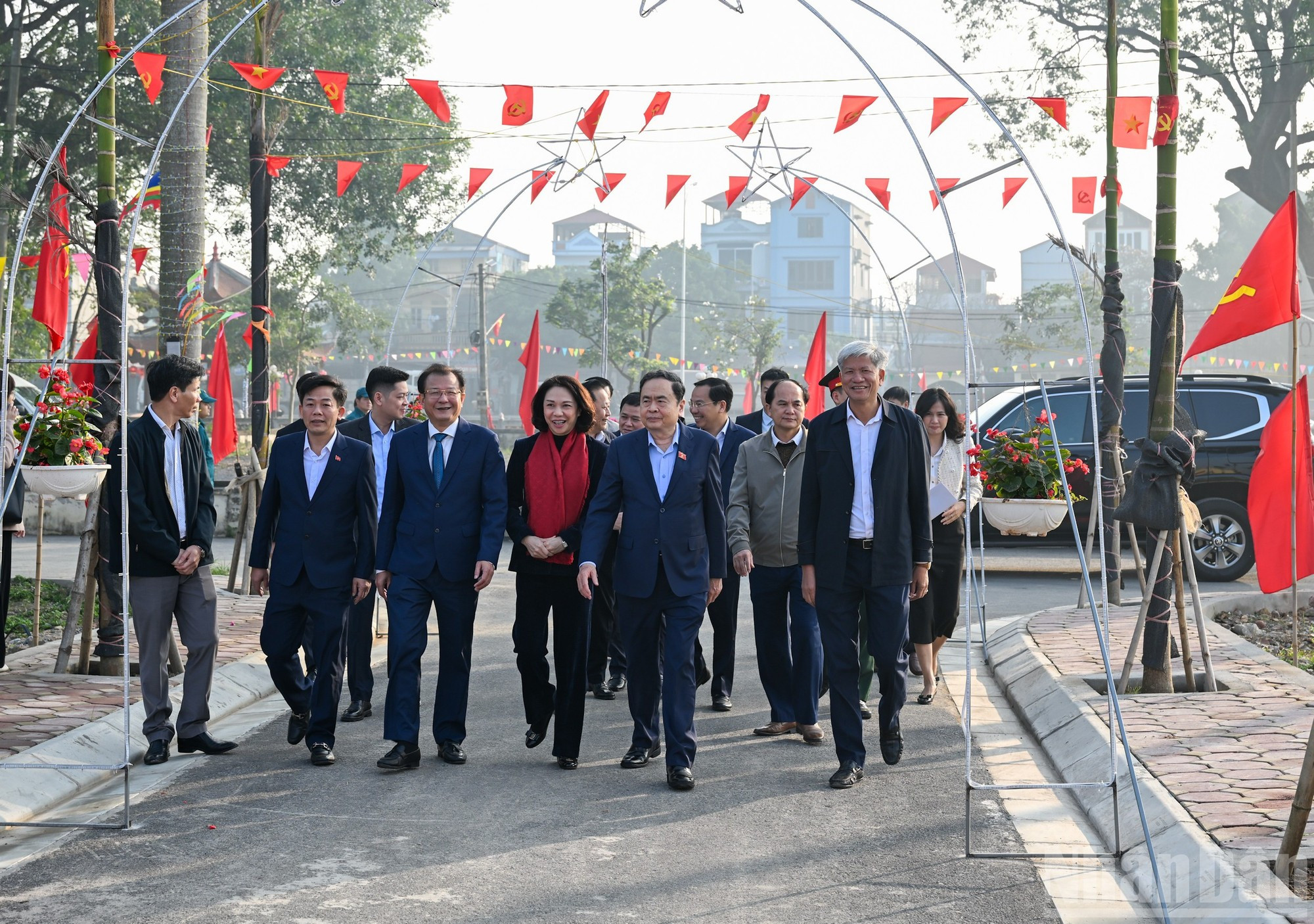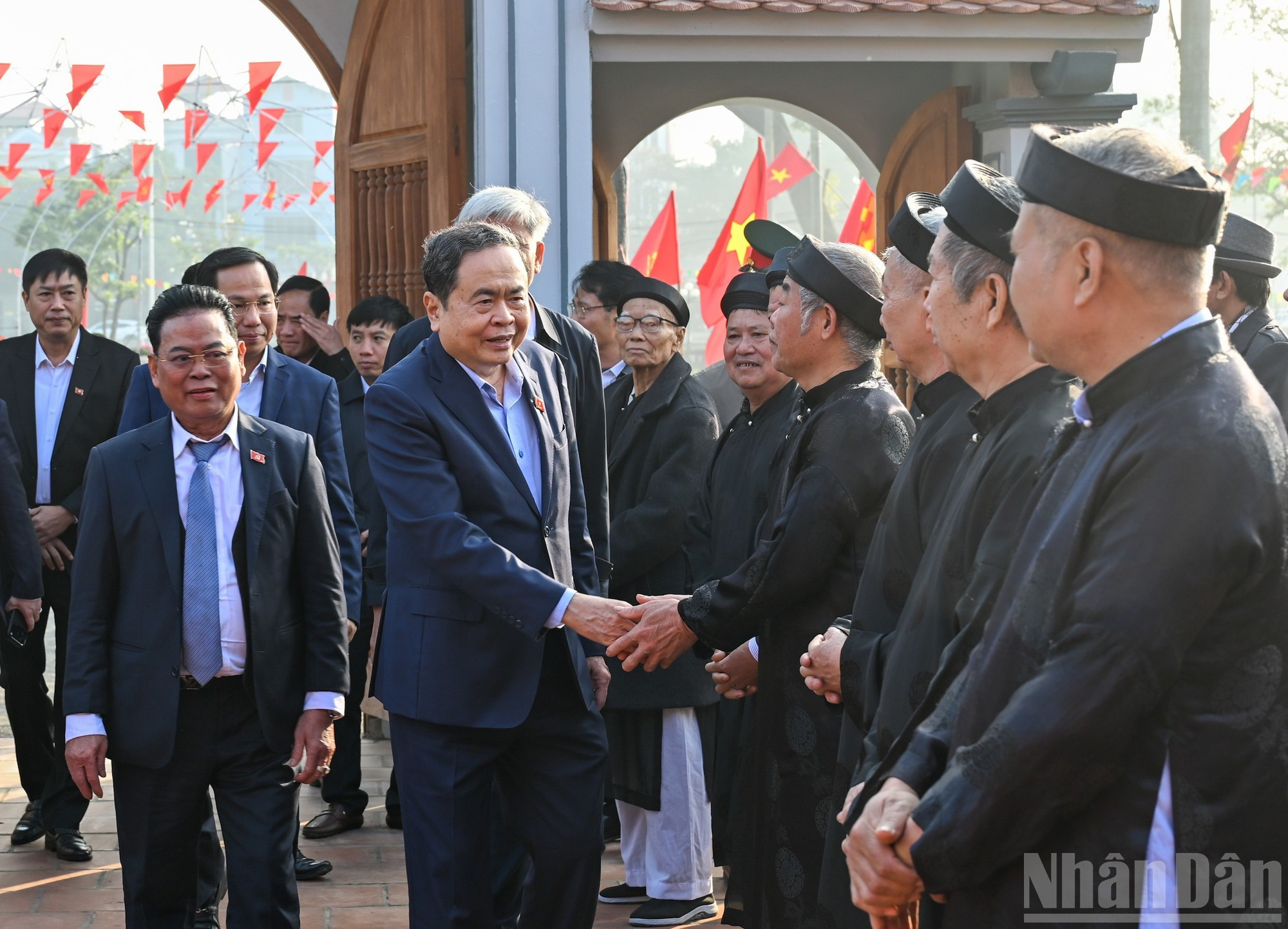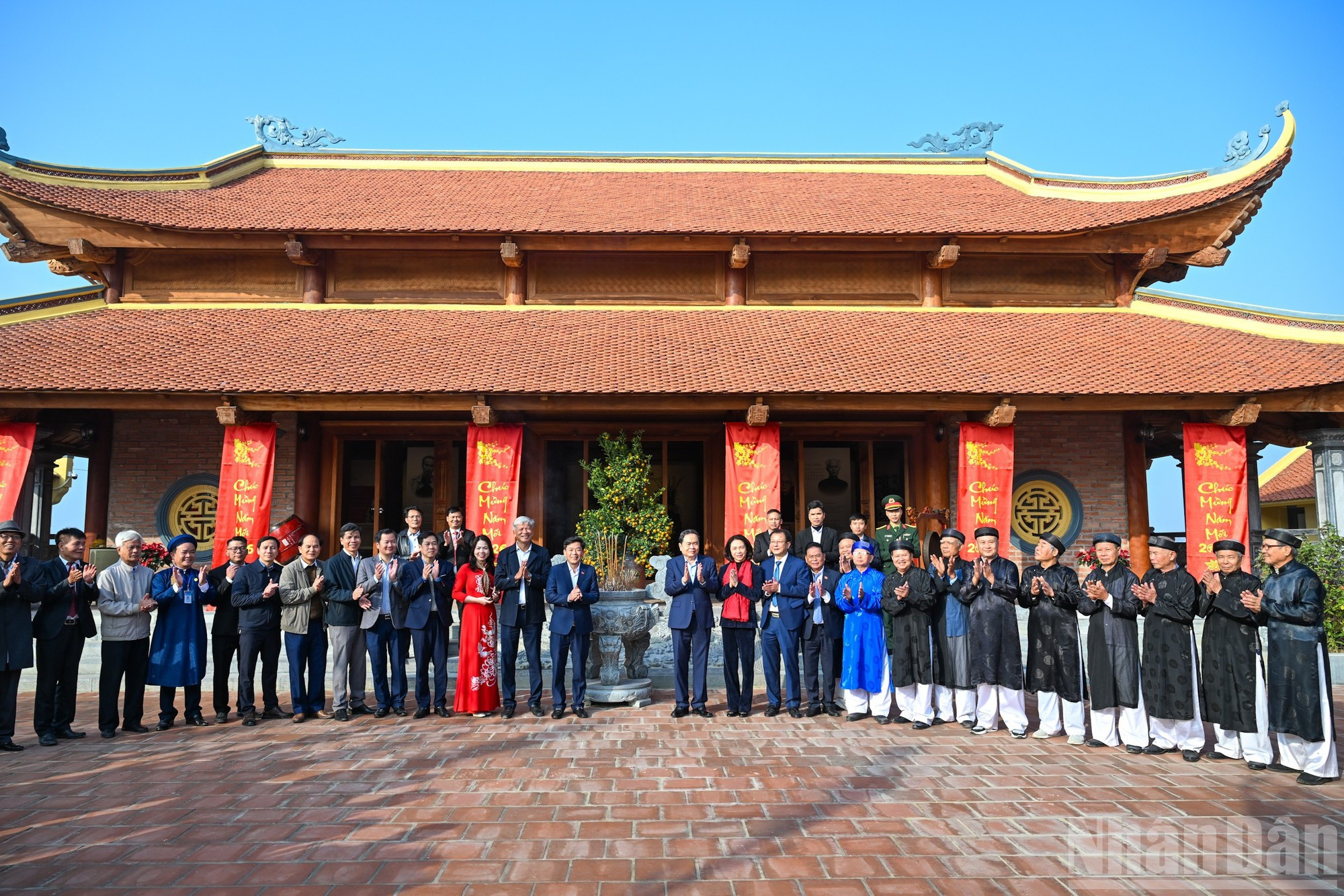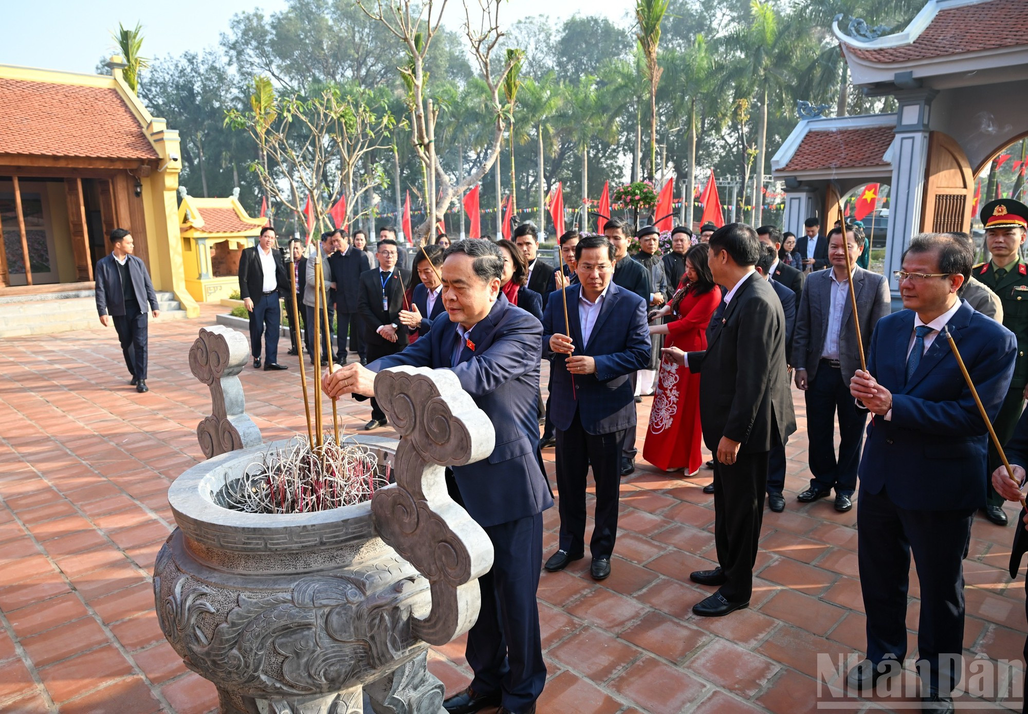 El presidente de la Asamblea Nacional, Tran Thanh Man, con los líderes de la ciudad de Hanói, la Junta Directiva y los ciudadanos en el sitio conmemorativo de Bui Bang Doan. (Foto: Duy Linh)
