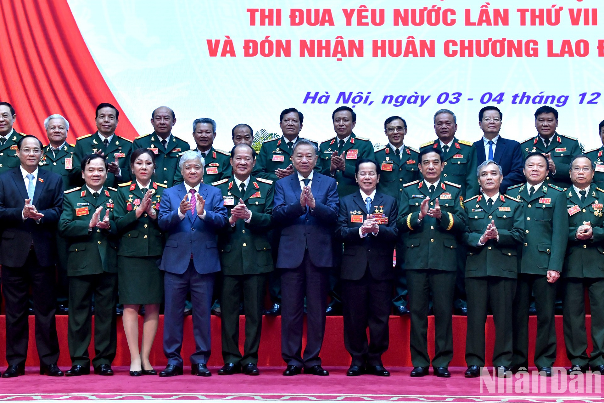 | To Lam entrega la Orden del Trabajo de primera clase a la Asociación de Veteranos de Vietnam. |