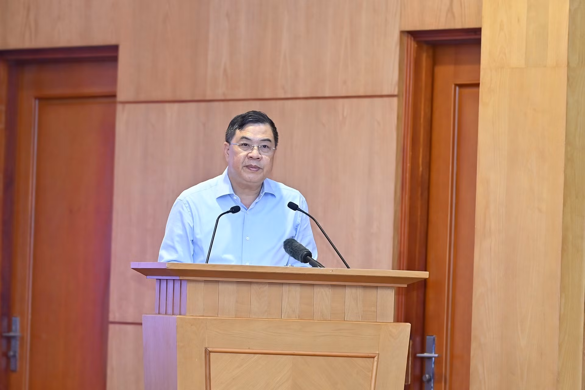 Pham Gia Tuc, jefe adjunto de la Oficina del Comité Central del Partido, presenta un informe.