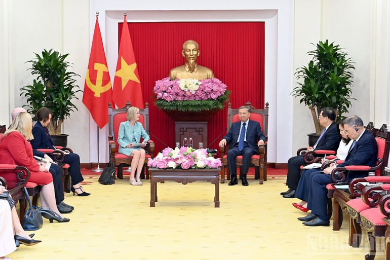 El secretario general del Partido Comunista de Vietnam, To Lam, recibió hoy en Hanói a la embajadora de Australia en Vietnam, Gillian Bird.