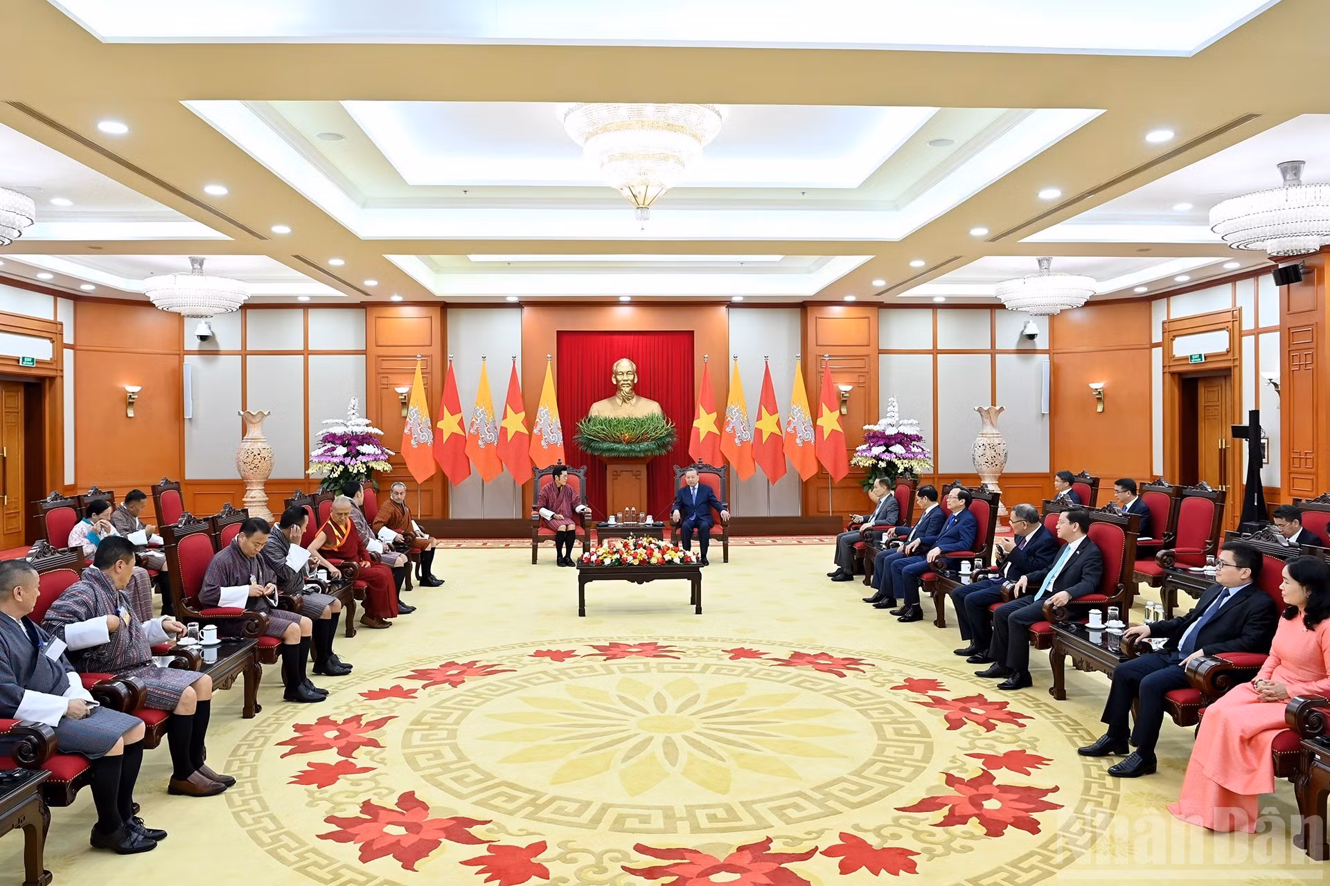 El secretario general del Partido Comunista de Vietnam, To Lam, recibe al rey de Bután, Jigme Khesar Namgyel Wangchuck.