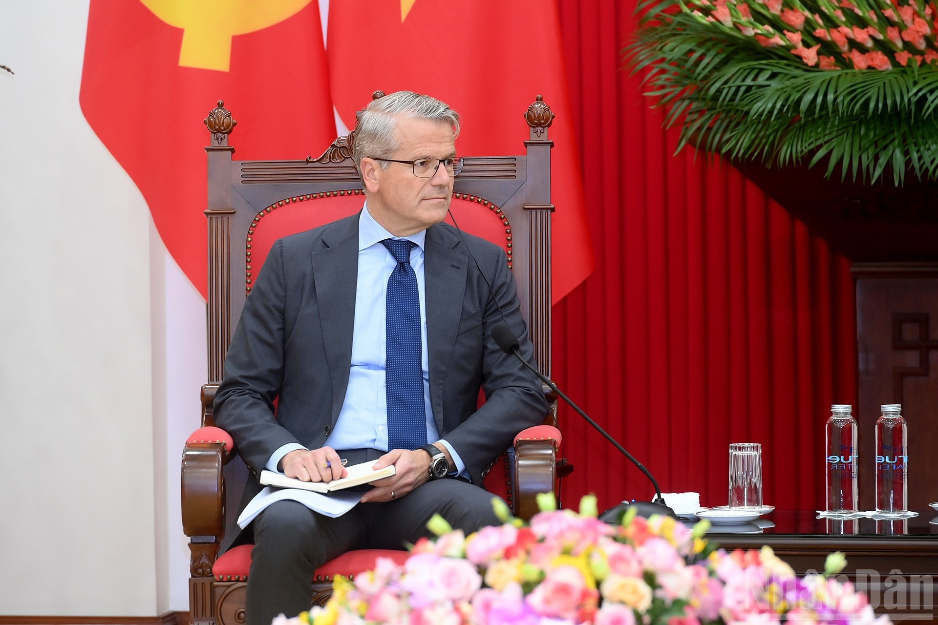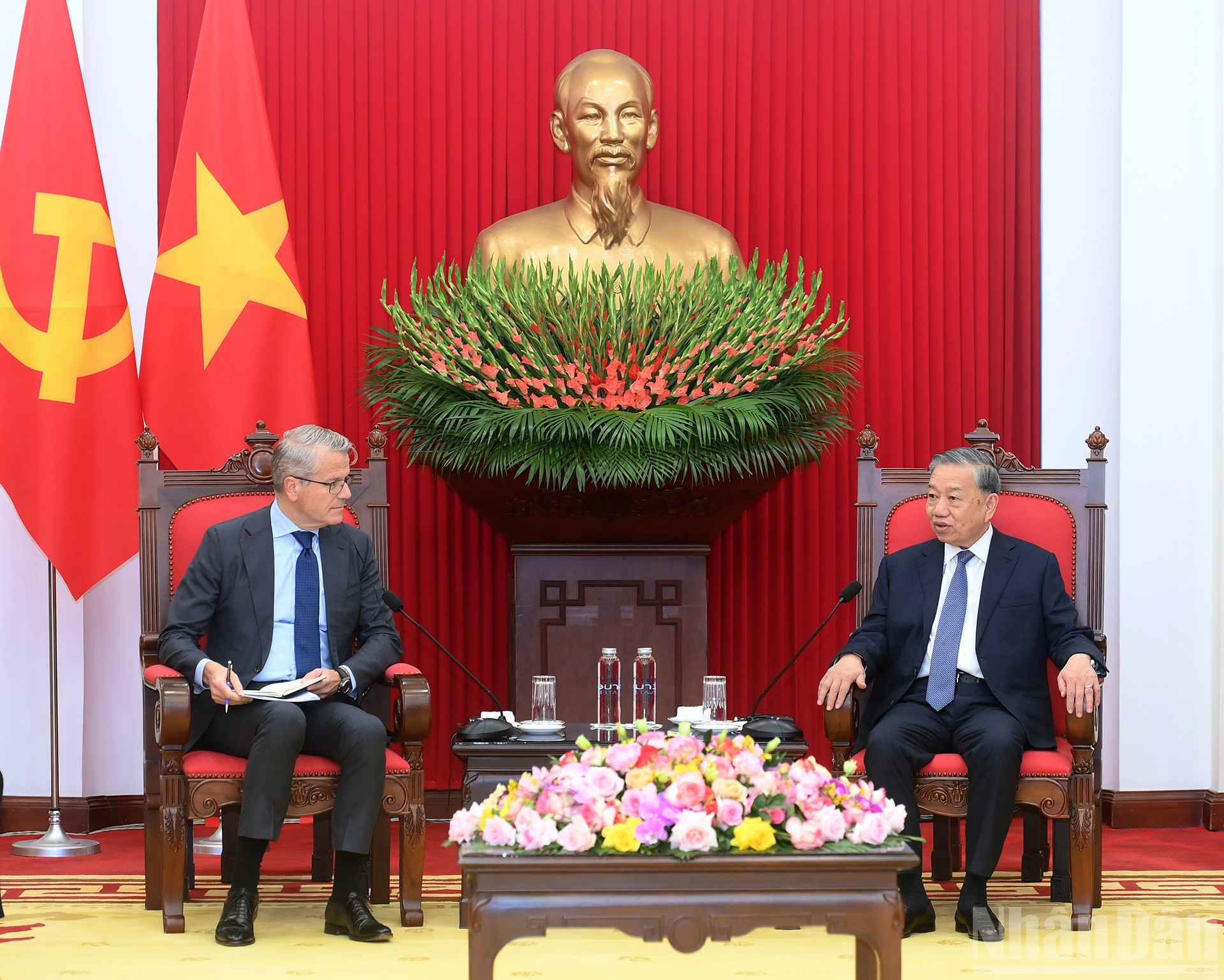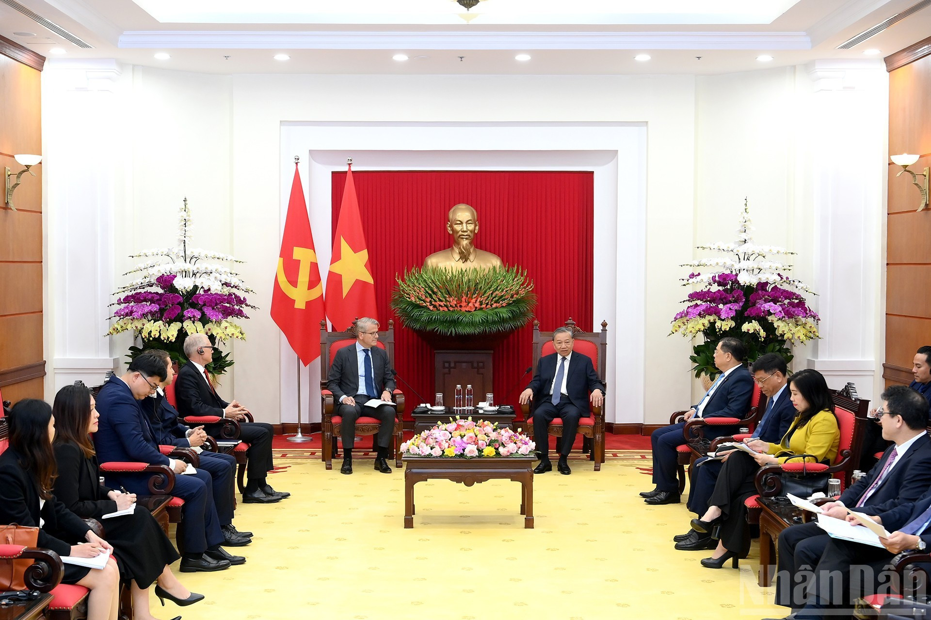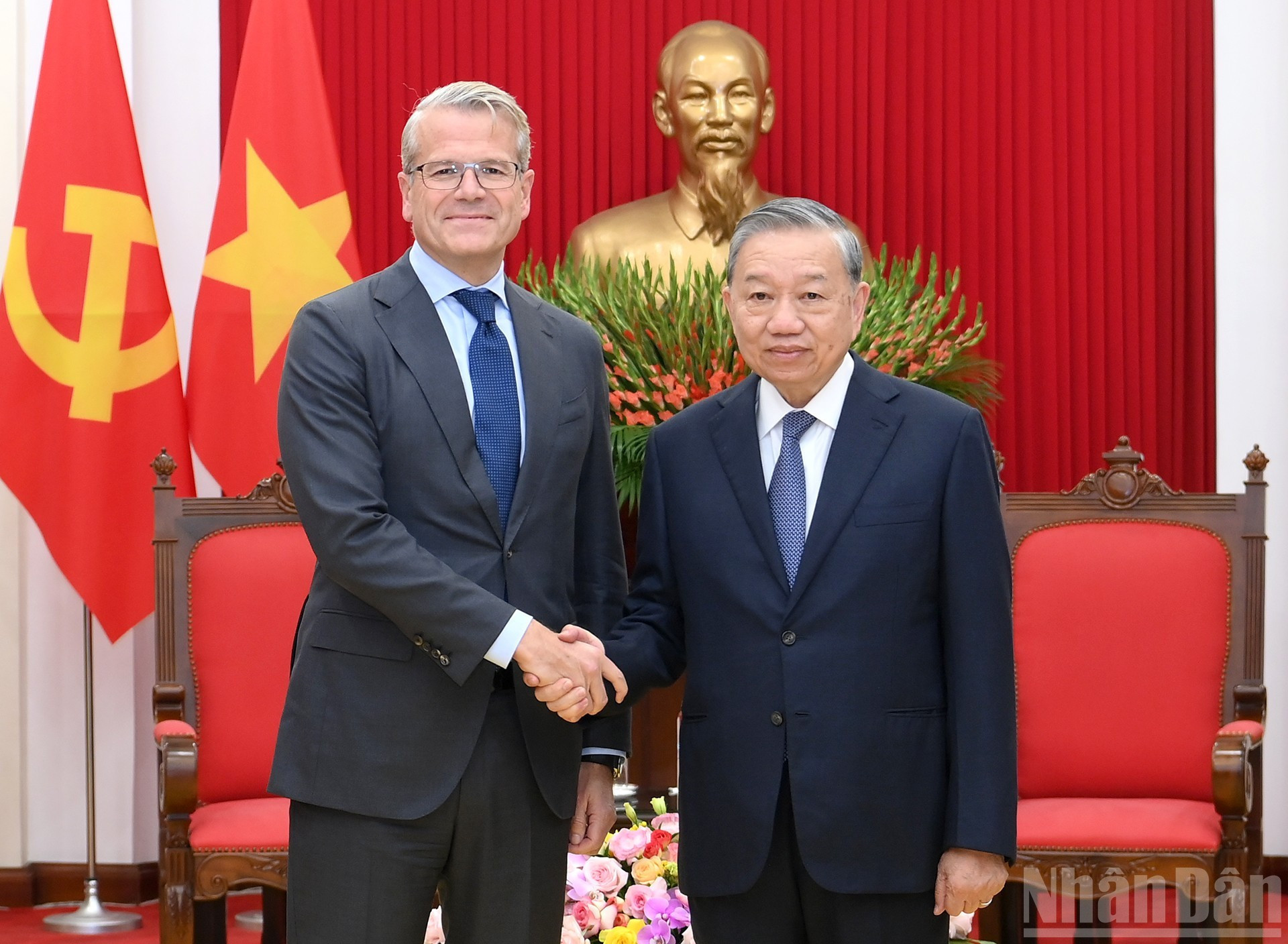 El secretario general del Partido Comunista de Vietnam, To Lam, recibe a Vincent Clerc, director general global del grupo de Dinamarca, A.P. Moller-Maersk.