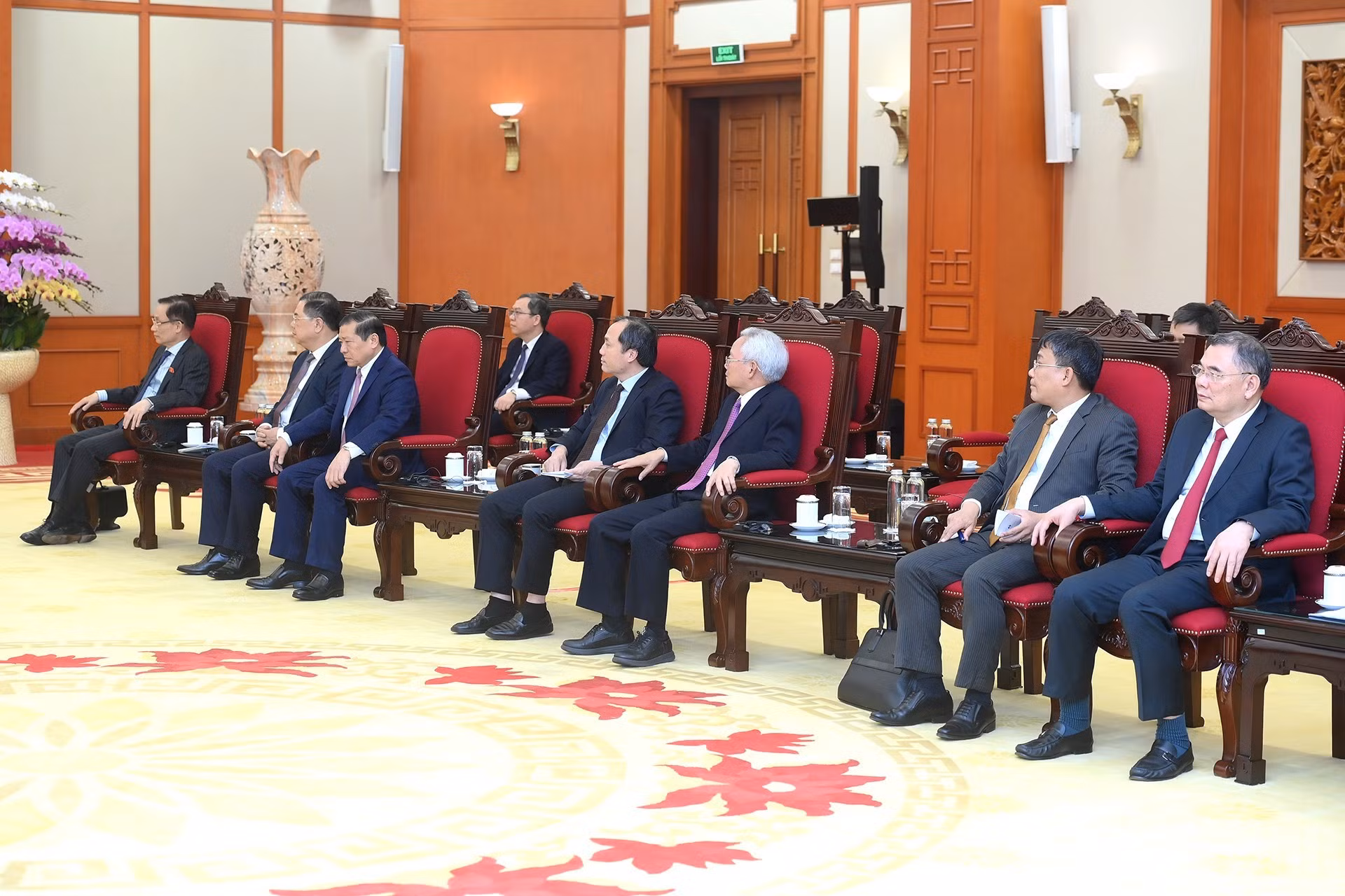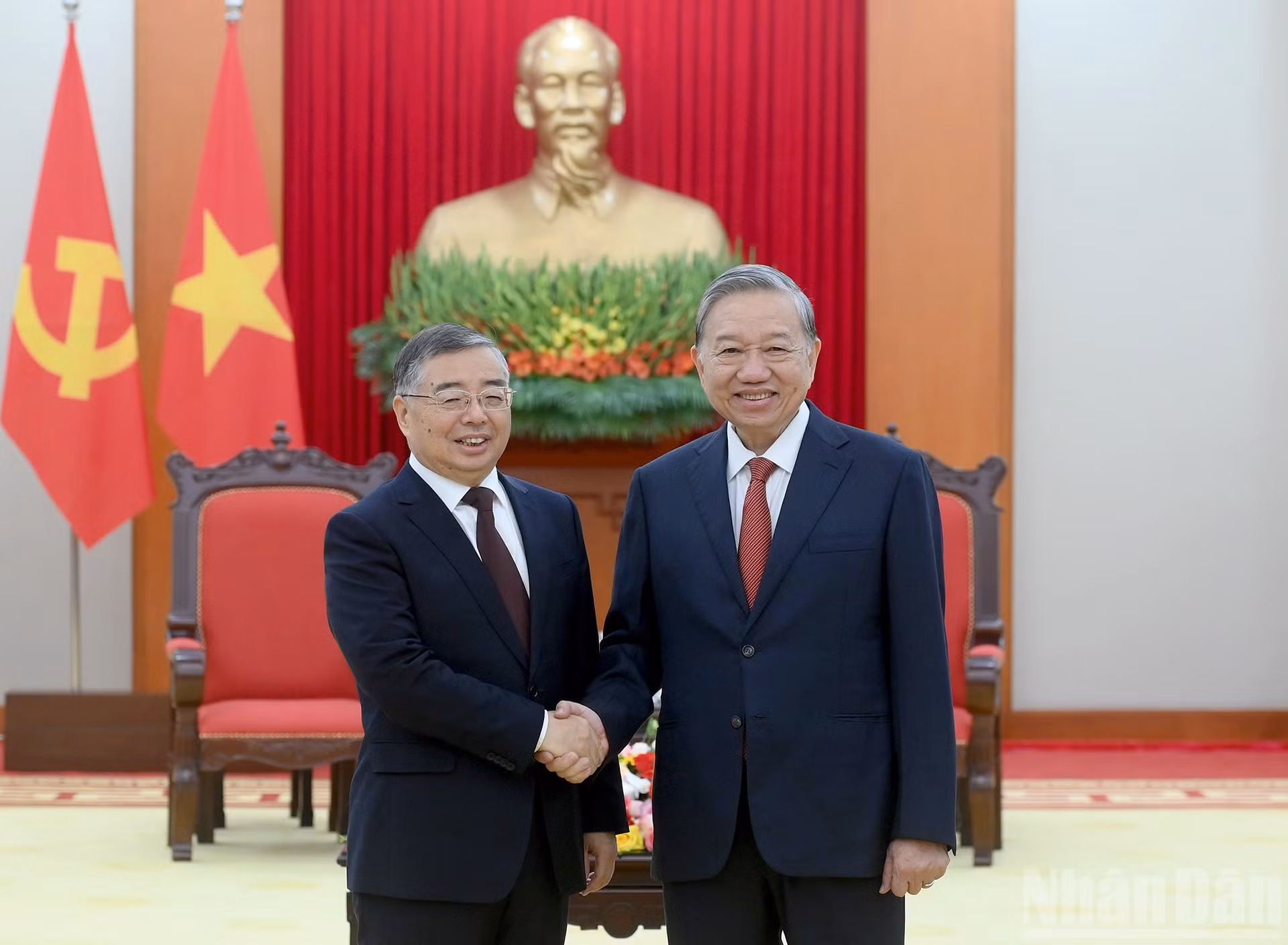 El secretario general del Partido Comunista de Vietnam, To Lam, recibe al jefe del Departamento de Propaganda del Comité Central del Partido Comunista de China, Li Shulei.