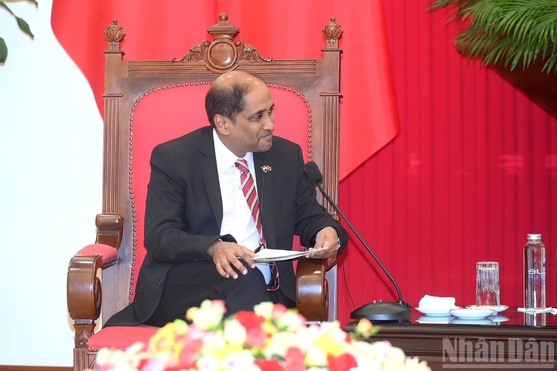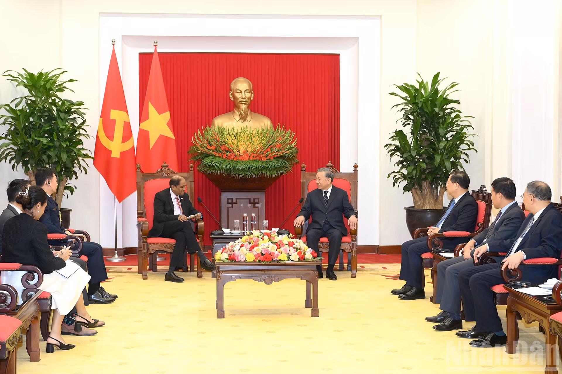El secretario general del Partido Comunista de Vietnam, To Lam, recibe al embajador de Singapur en Hanói, Jaya Ratnam.