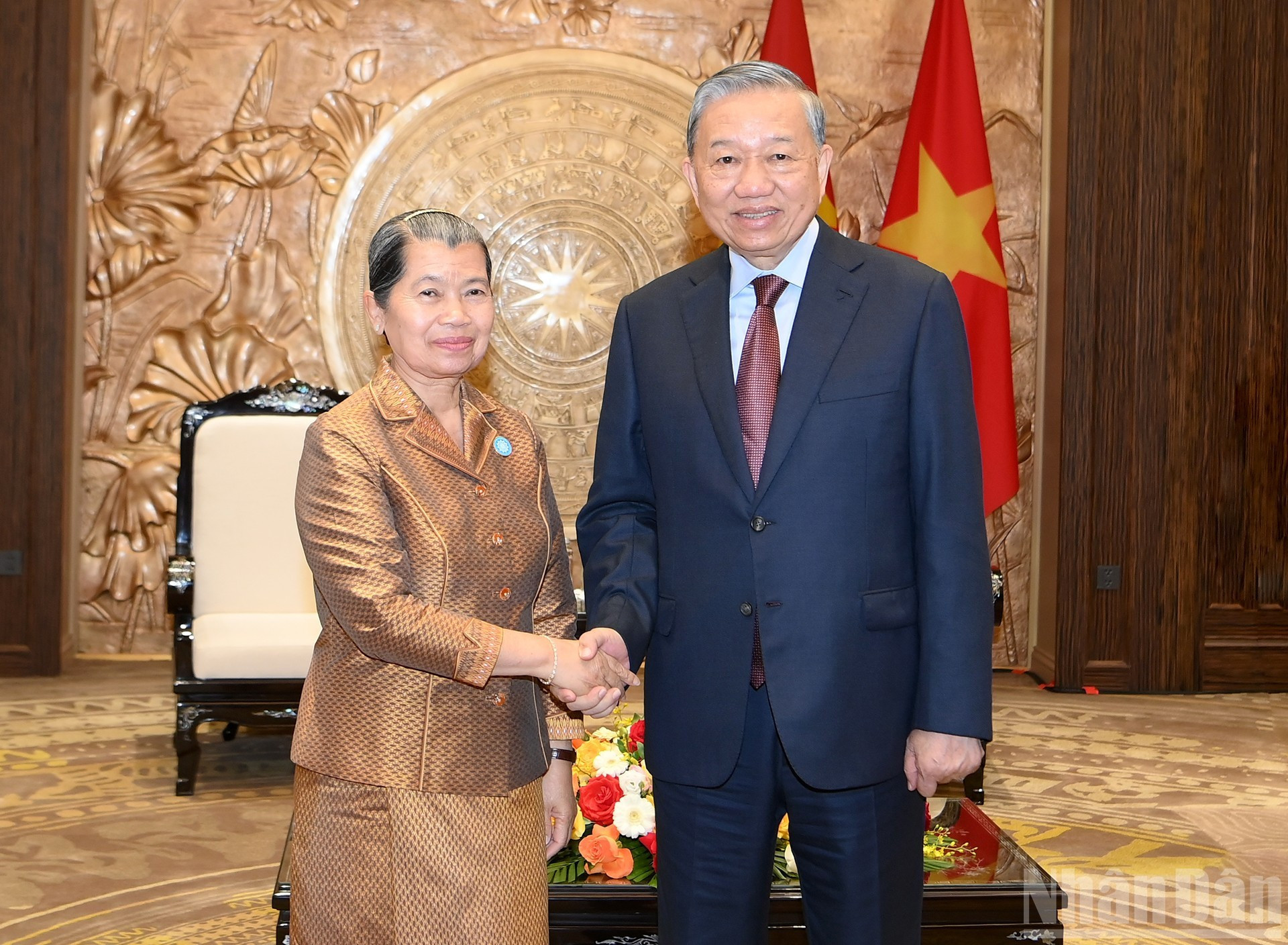 El secretario general del Partido Comunista de Vietnam, To Lam, recibe a Men Sam An, vicepresidenta del Partido Popular de Camboya y titular del Consejo Nacional del Frente de Solidaridad para el Desarrollo de la Patria de ese país.
