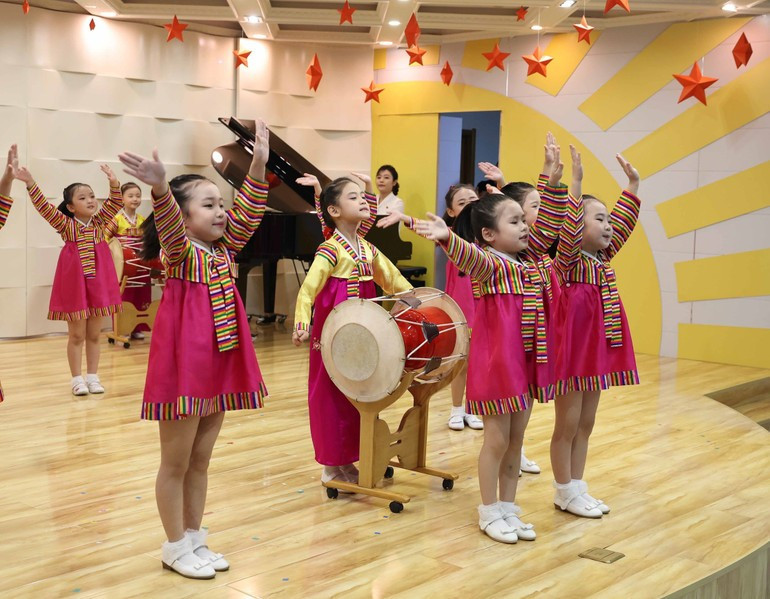 Actuación de bienvenida de los niños del jardín de infancia Kieng Sang. (Foto: VNA)