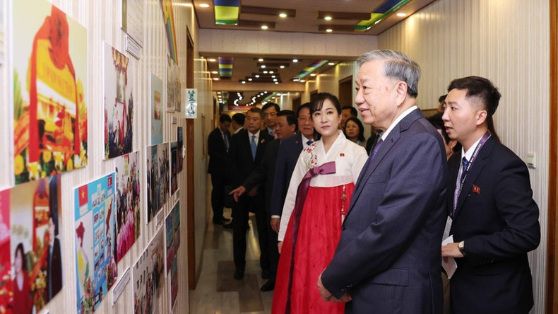 El secretario general del Partido Comunista de Vietnam, To Lam, visita el aula con nombre de Presidente Ho Chi Minh. (Foto: VNA)