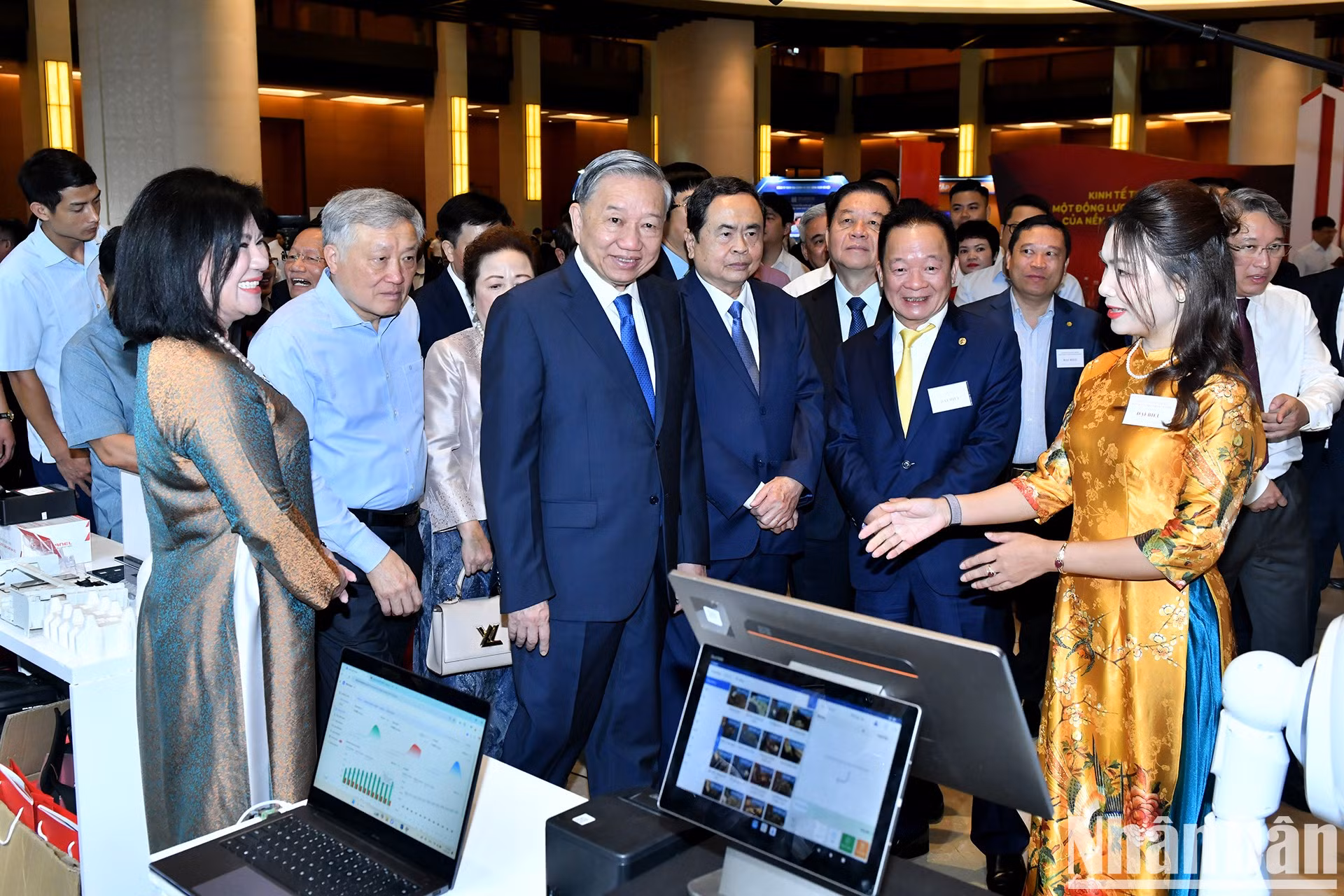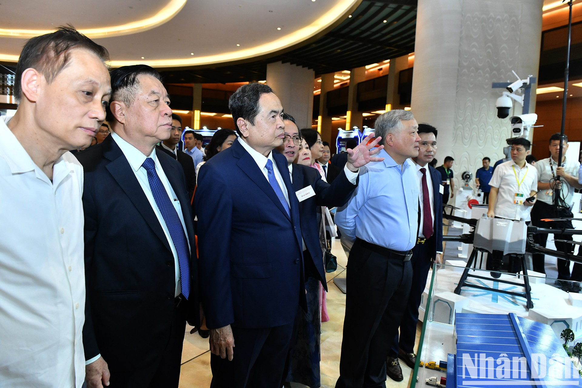 | El secretario general del Partido Comunista de Vietnam, To Lam, y otros dirigentes del Partido y el Estado visitan la muestra. |