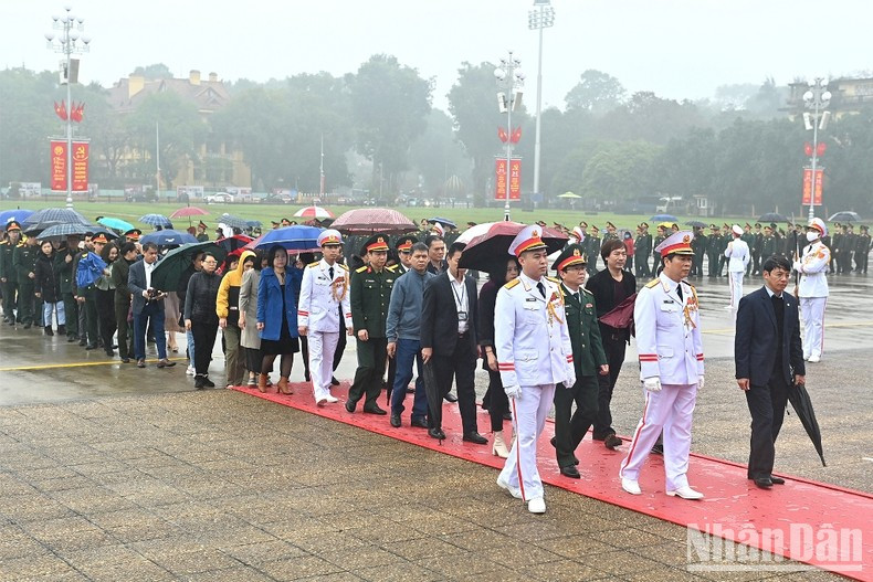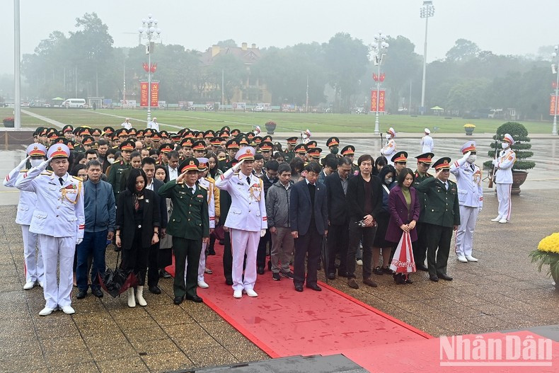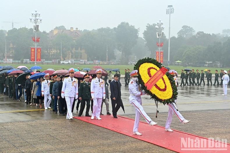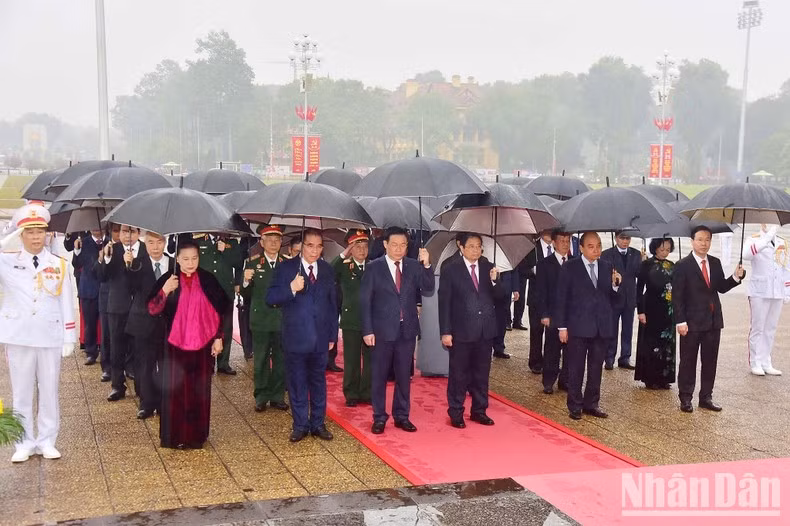 | Líderes y exdirigentes del Partido y Gobierno visitan el Mausoleo del Presidente Ho Chi Minh. |