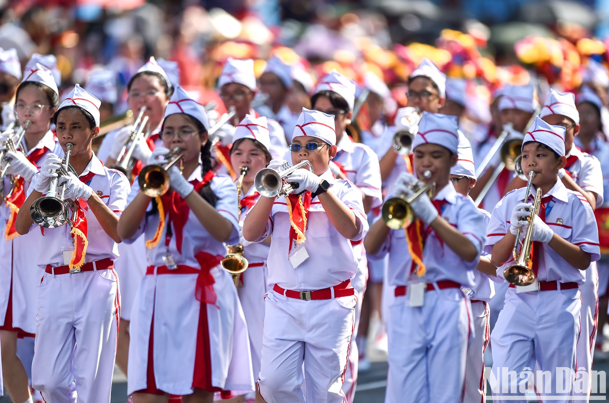 | La carroza con el retrato del Presidente Ho Chi Minh entra al escenario. |