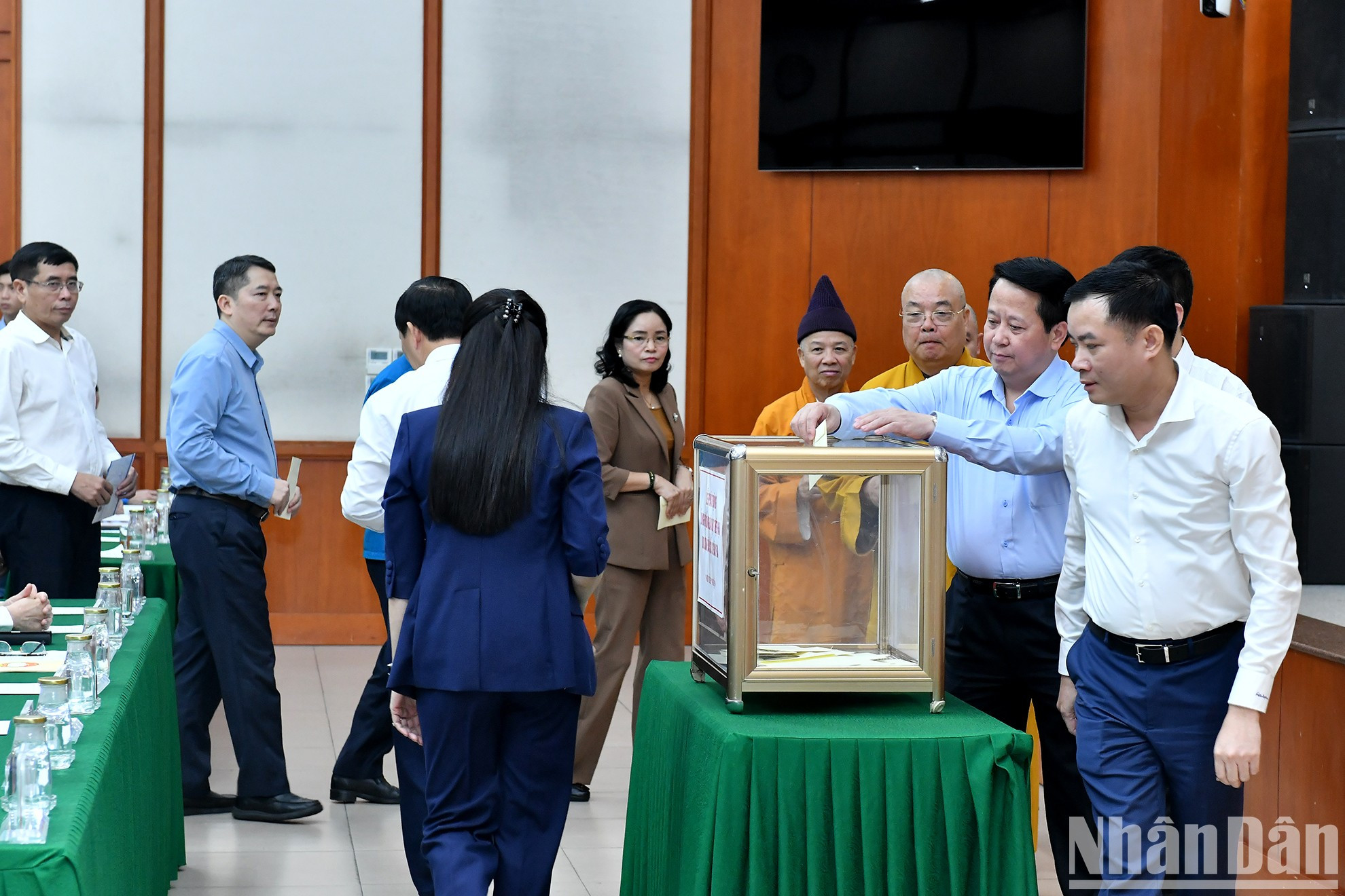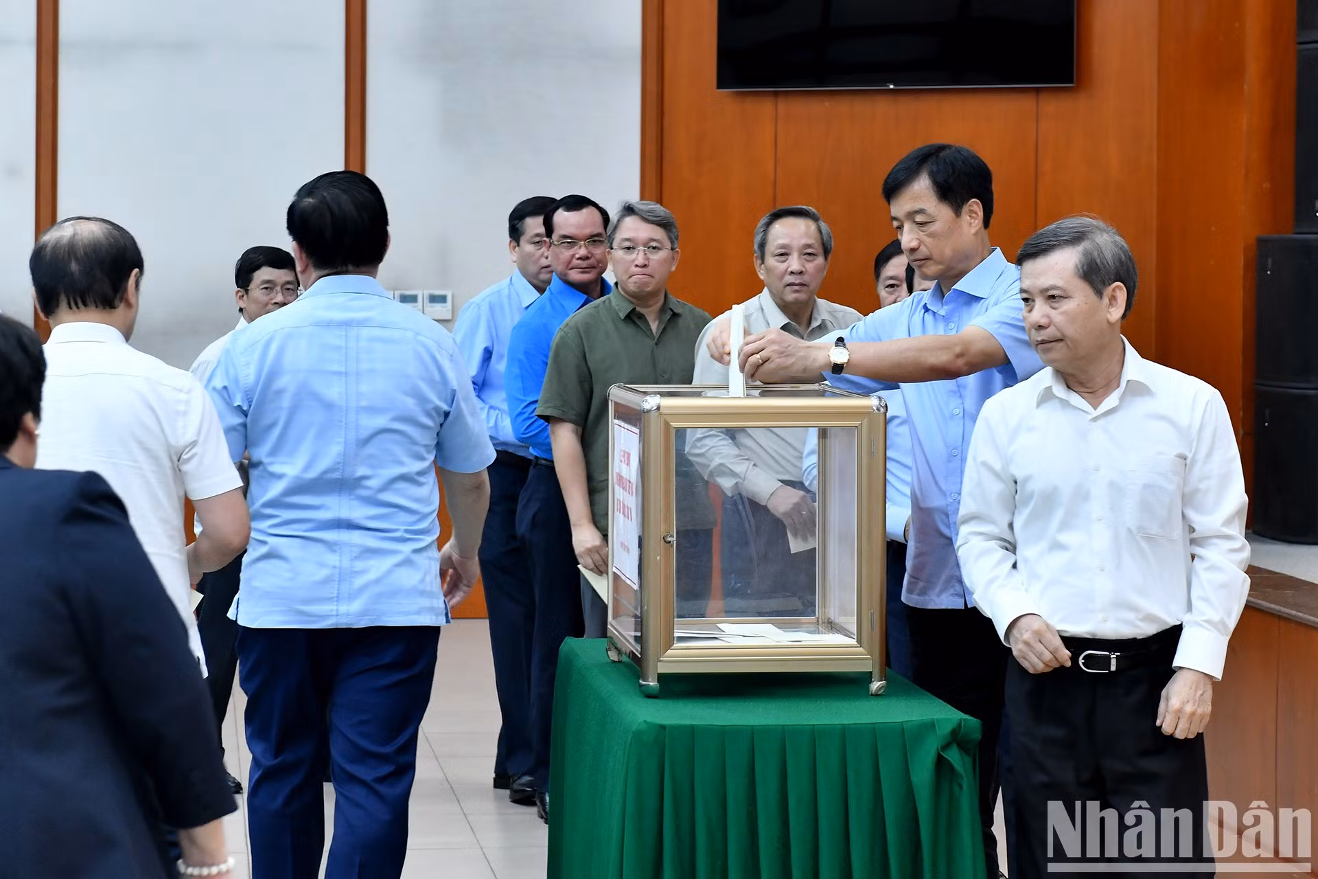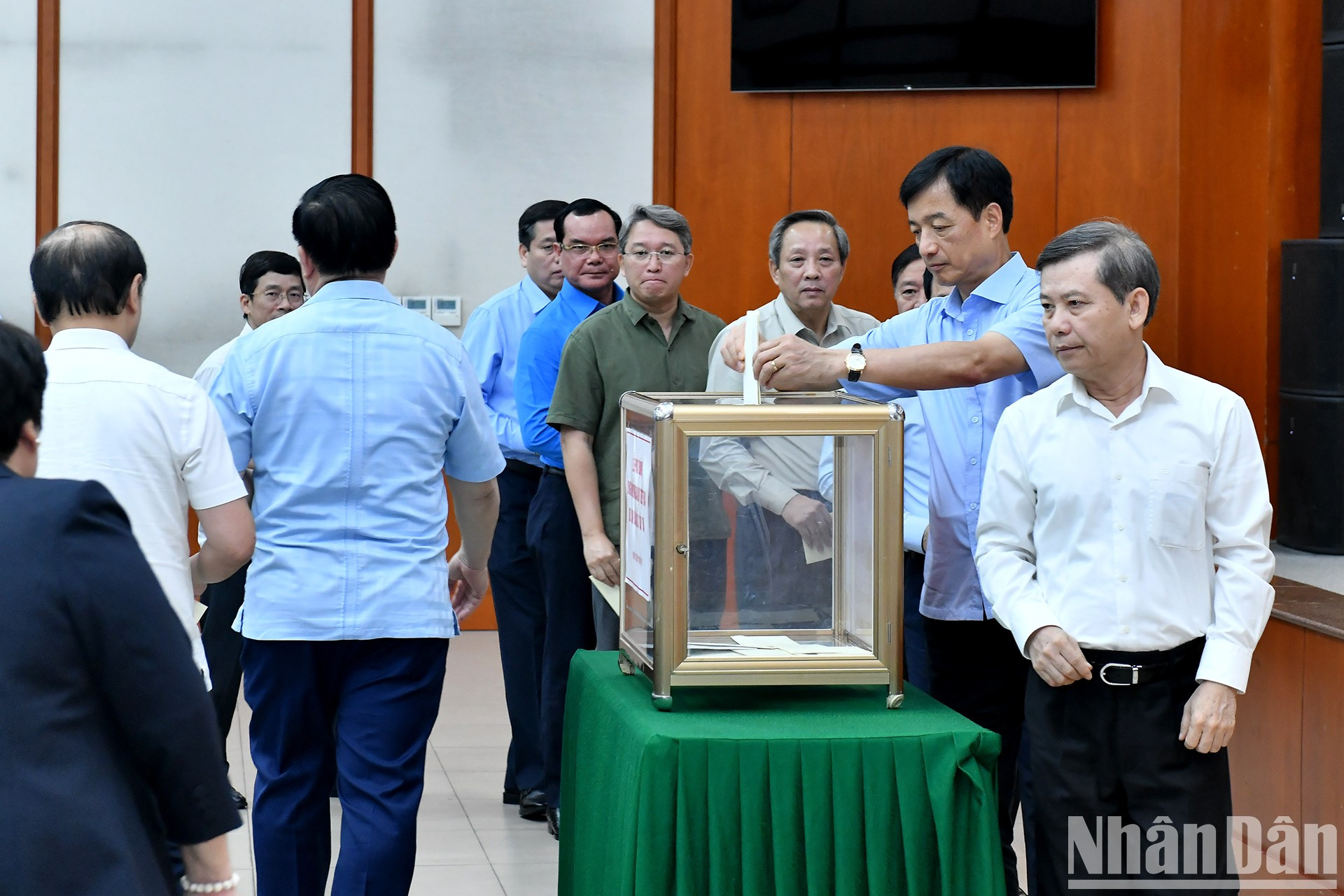 | El máximo dirigente de Vietnam, To Lam, (en el centro) y los delegados asisten al acto. |