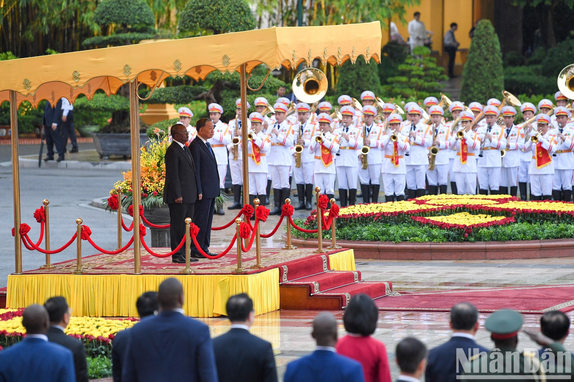 El secretario general del Partido Comunista y presidente de Vietnam, To Lam, presidió hoy una recepción ceremonial al presidente de Guinea-Bissau, Umaro Sissoco Embaló, quien se encuentra de visita de Estado a Hanói del 5 al 8 del presente mes.