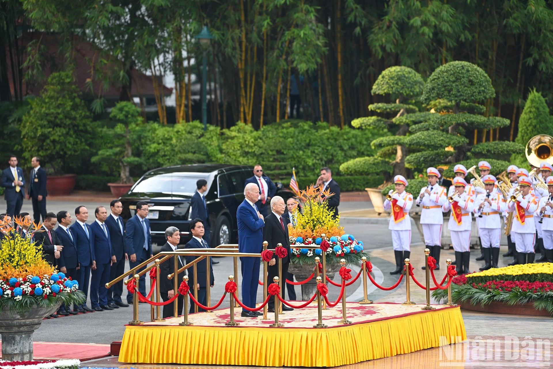 | El presidente de Estados Unidos, Joe Biden, y su comitiva llegan al Palacio Presidencial. |