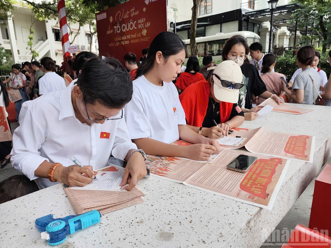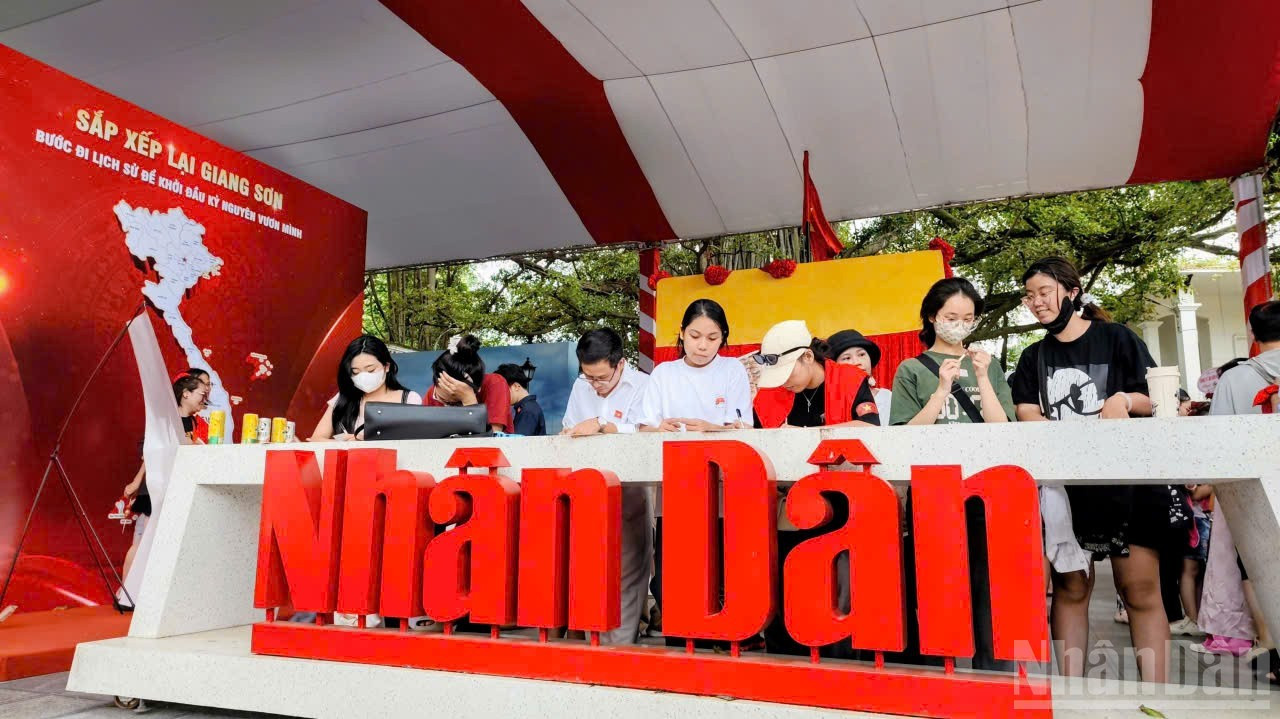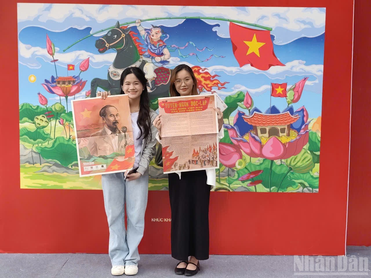La exhibición se instala en la sede del periódico, en Hanói. Pobladores hacen cola para recibir el suplemento especial de Nhan Dan por el 80º aniversario de la Revolución de Agosto (19 de agosto) y del Día Nacional (2 de septiembre). La distribución del suplemento forma parte de la exposición.