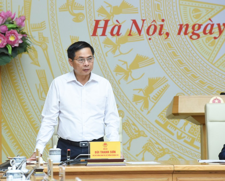 El viceprimer ministro y canciller de Vietnam, Bui Thanh Son, toma la palabra en la cita.
