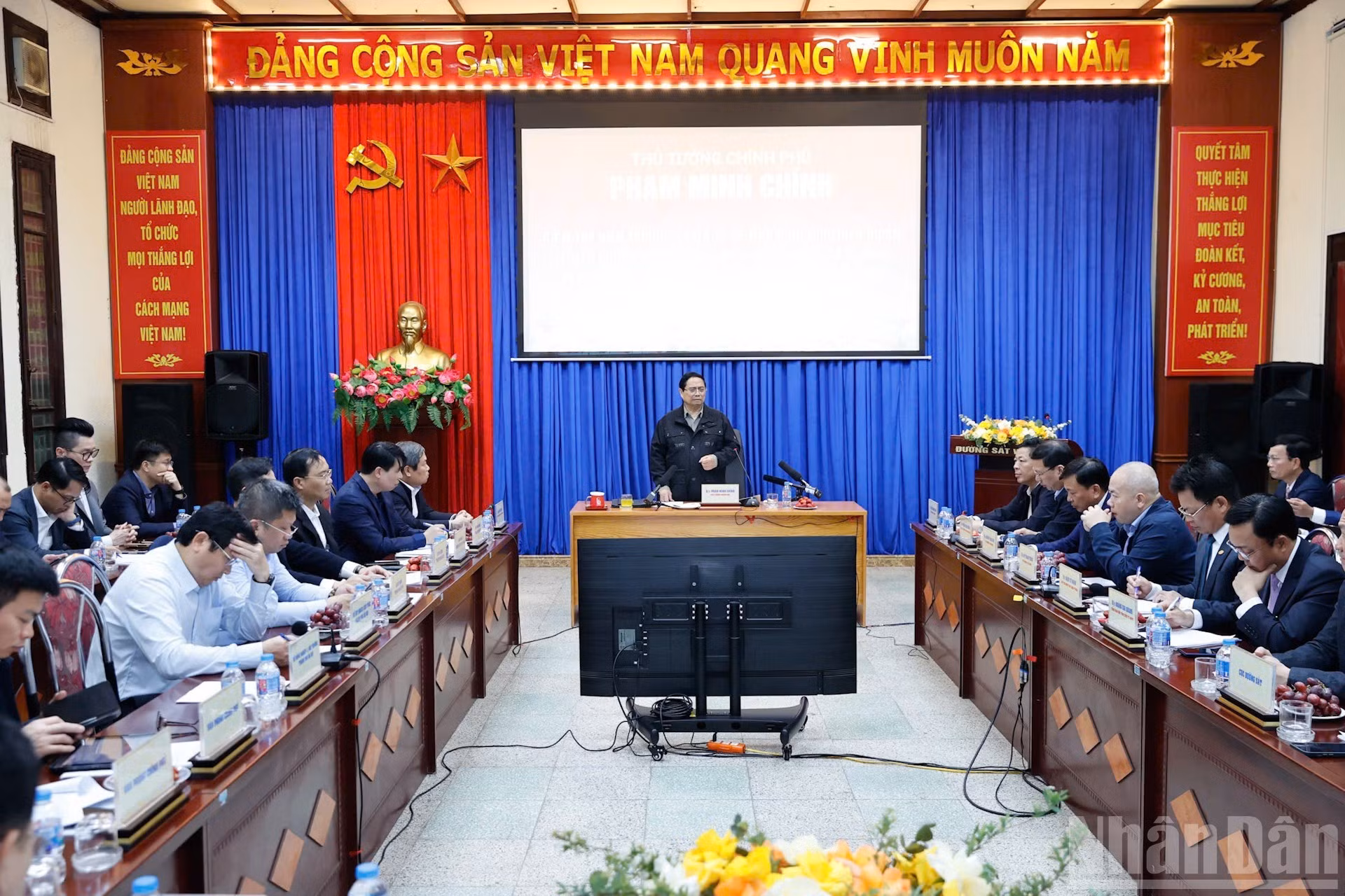 El primer ministro Pham Minh Chinh felicita por el Año Nuevo Lunar y asigna tareas a las entidades de construcción del proyecto ferroviario.
