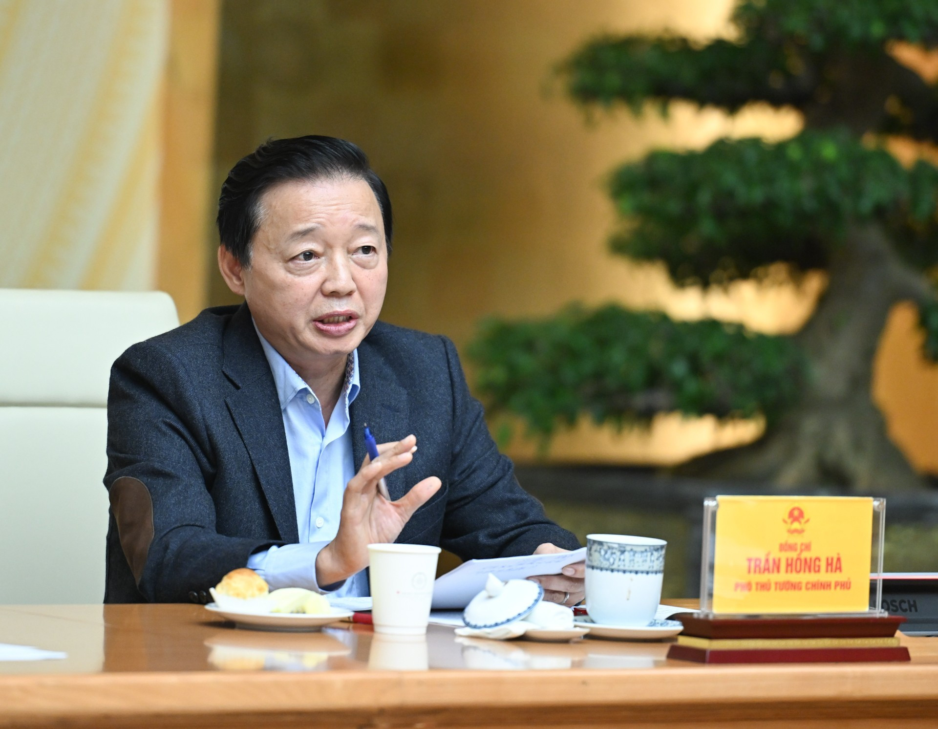 El viceprimer ministro vietnamita, Tran Hong Ha, habla en la conferencia.