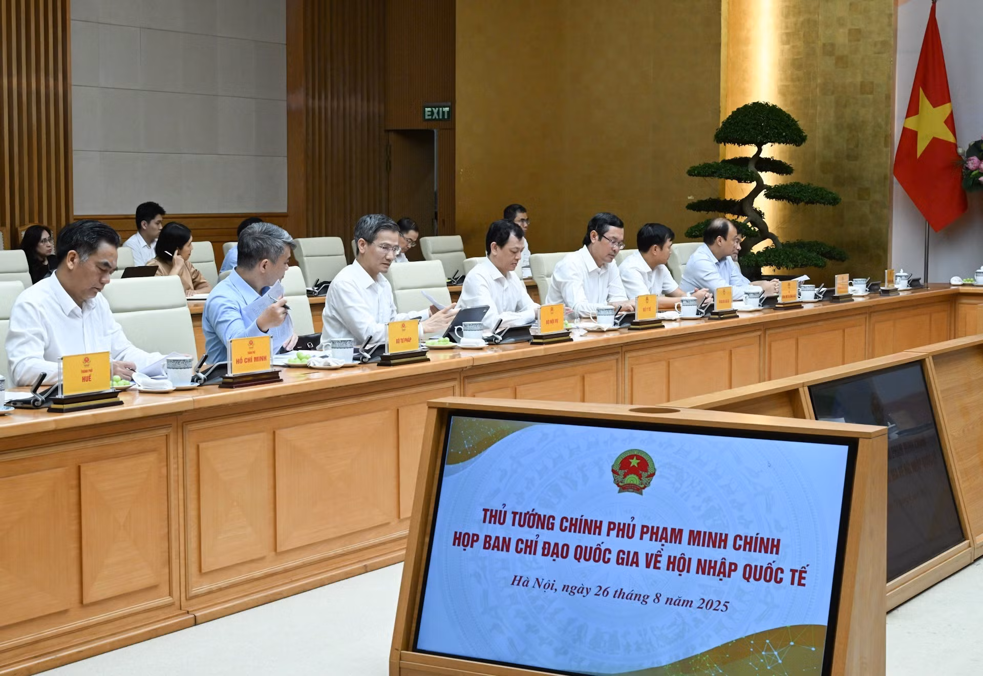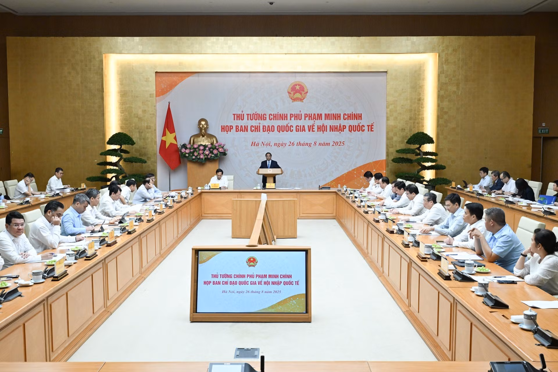 El premier vietnamita, Pham Minh Chinh, y miembros del Comité Directivo Nacional de Integración Internacional.