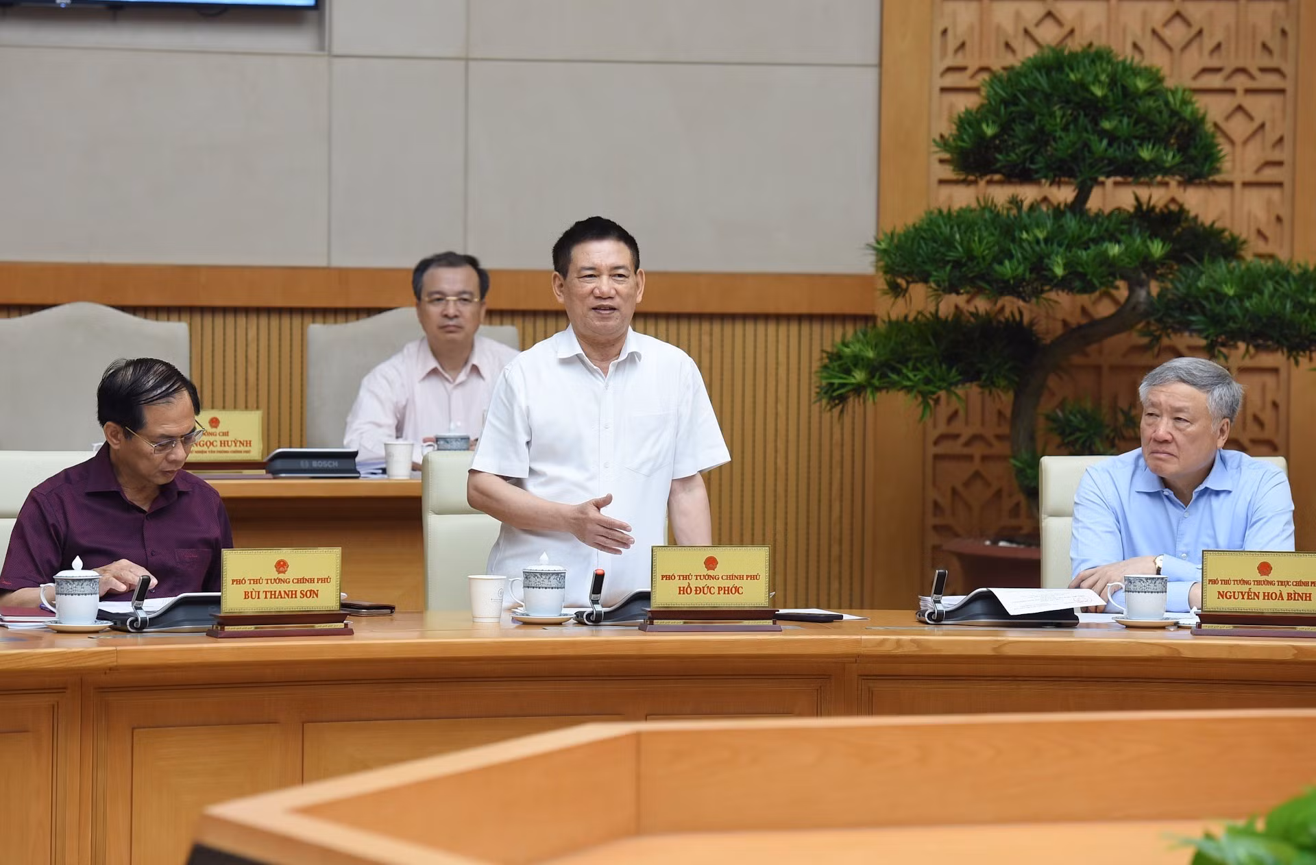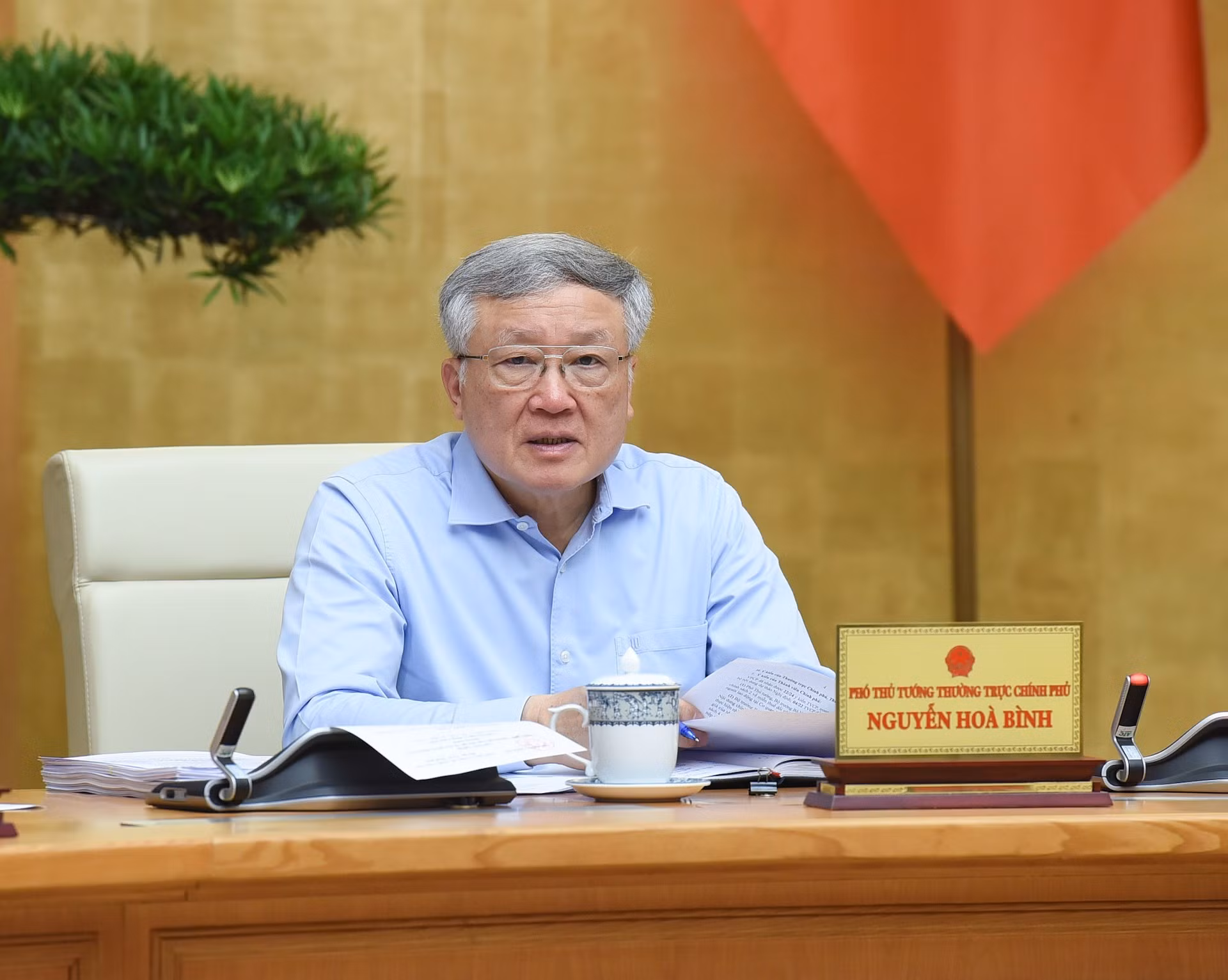 El viceprimer ministro permanente, Nguyen Hoa Binh, habla en el evento.